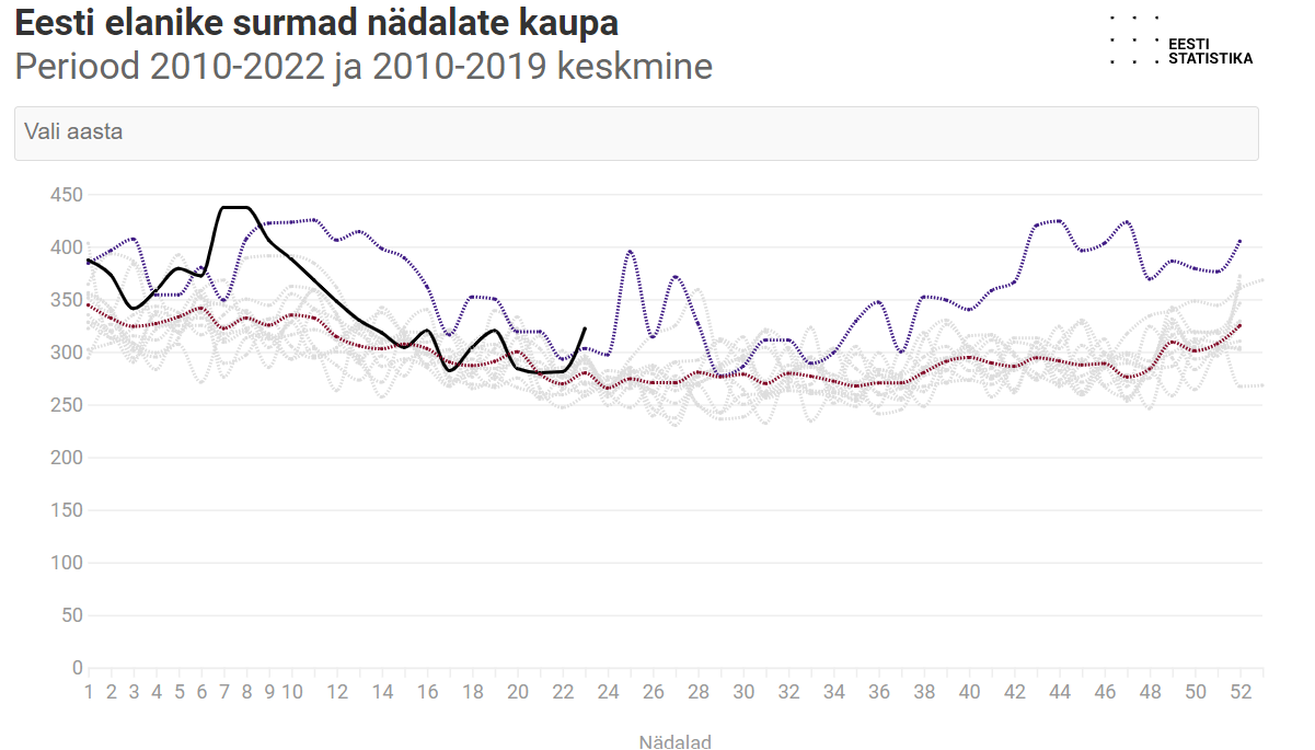 Hetkeolukorrast, suremus on normaliseerunud (must joon 2022)