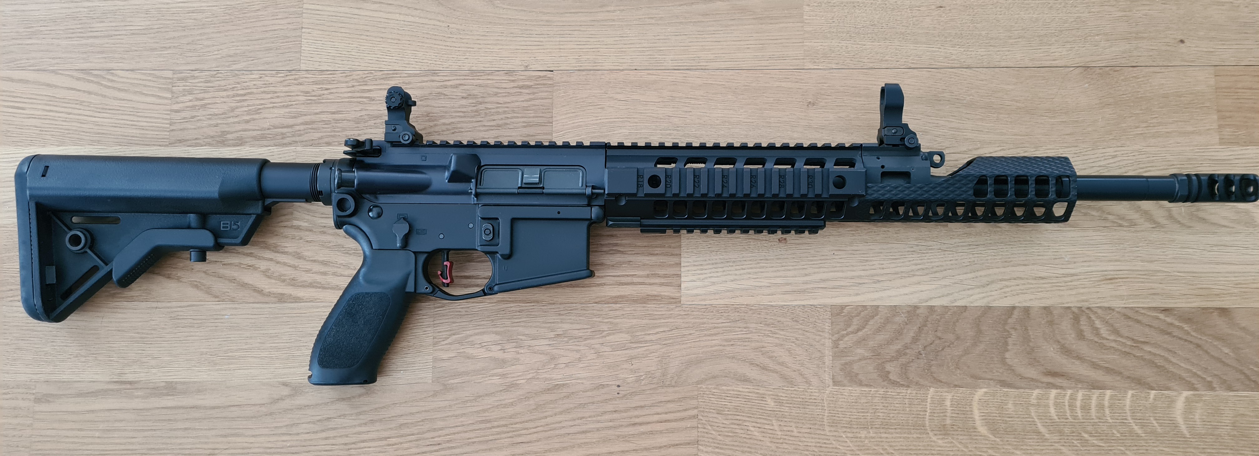 Müüa Sig 516, kaliiber 5,56 mm, vintraua pikkus 16". Lasknud u 4000 lasku. Komplektiga kaasas 1x10 lasuline salv ja 1x30 lasuline salv (vastava loa olemasolul), kiirkinnitusega relvarihm, relvakohver.
