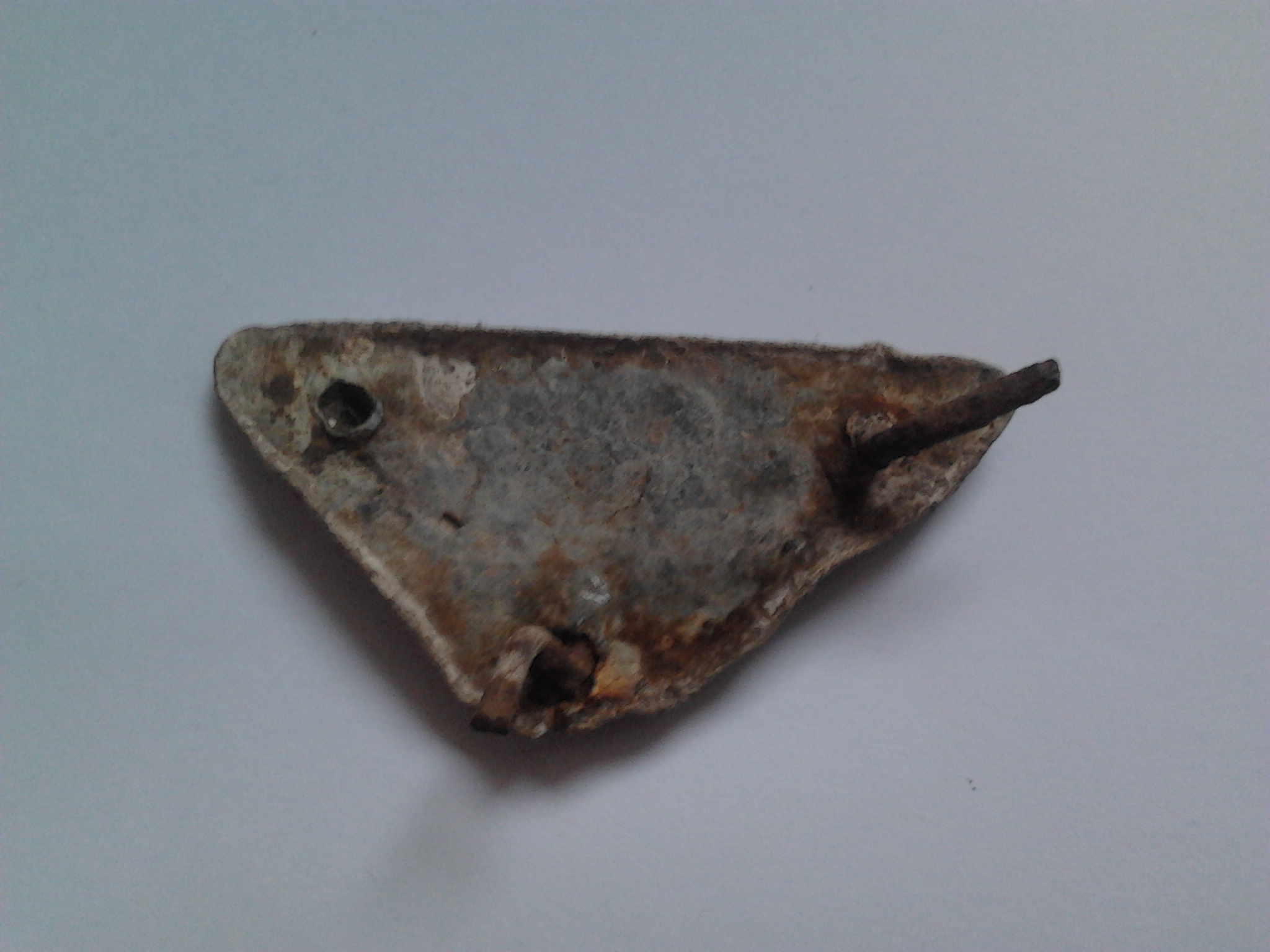 Siis leitud selline huvitav kolme kinnitusega märk, millest üks naga kadunud, tunne on, et peaks käima kuhugi riidevärgi külge. Esimese hooga oleks mütsimärgiks pakkunud. Leitud militaarse taustaga metsast. Oskab keegi midagi arvata? Samast piirkonnast, mitte kaugelt eemalt ka üks autasu lindiliist, see peaks vene oma olema. Kolooda 99% tõenäosusega kaotatud 1941 kablutamisel Tallinna suunal.