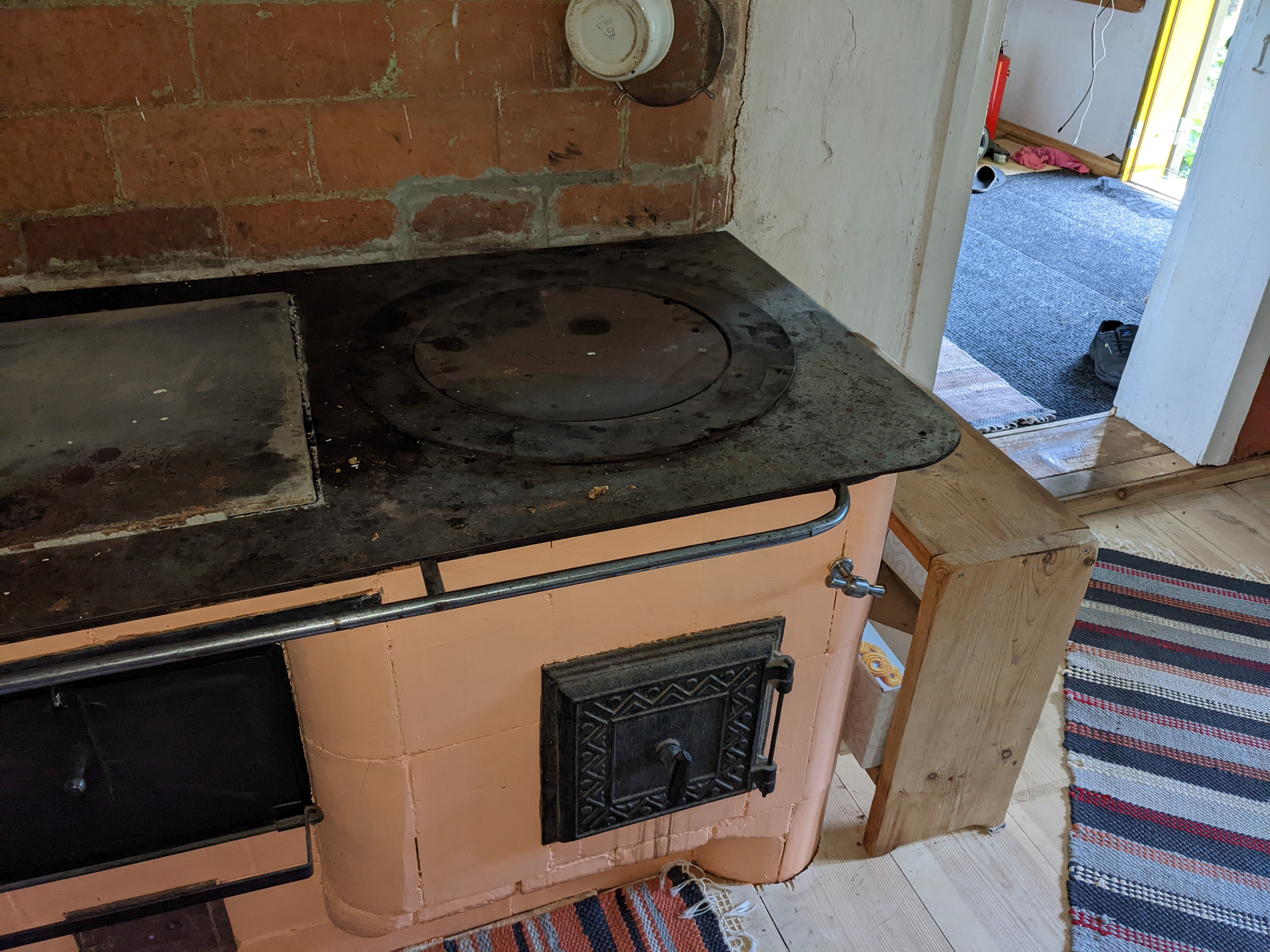 Mõnel pliidil on veel sellised toredad pajaaugud. Pliidirauda ja praeahju köetakse eraldi. Vanasti läks see pajaalune kolle läbi leso, kuid peale ümberehitust sai lisatud eraldi siiber otse korstnasse. Peale seda kui vesi sai majja, enam ei kasuta.