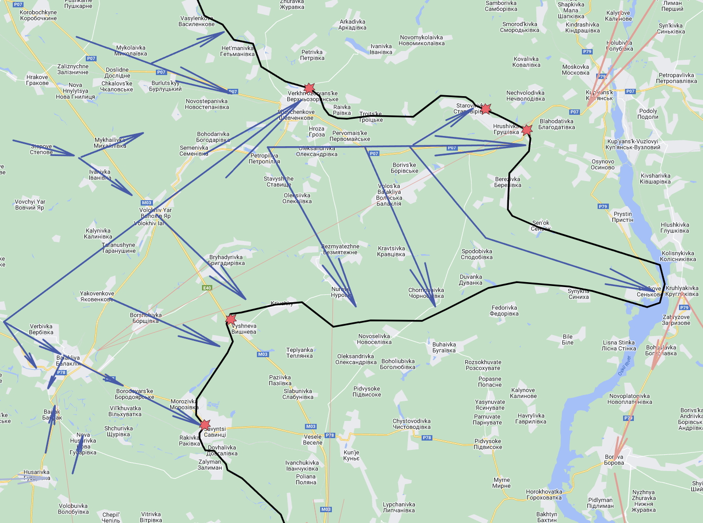 Borovskoje asulast kuni Kupjanski lääneservani sirutas ennast täna varahommikul rahulikult Ukraina relvajõudude soomuskolonn. R07 maantee UAF kontrollitav lõik on vähemalt 15 km.