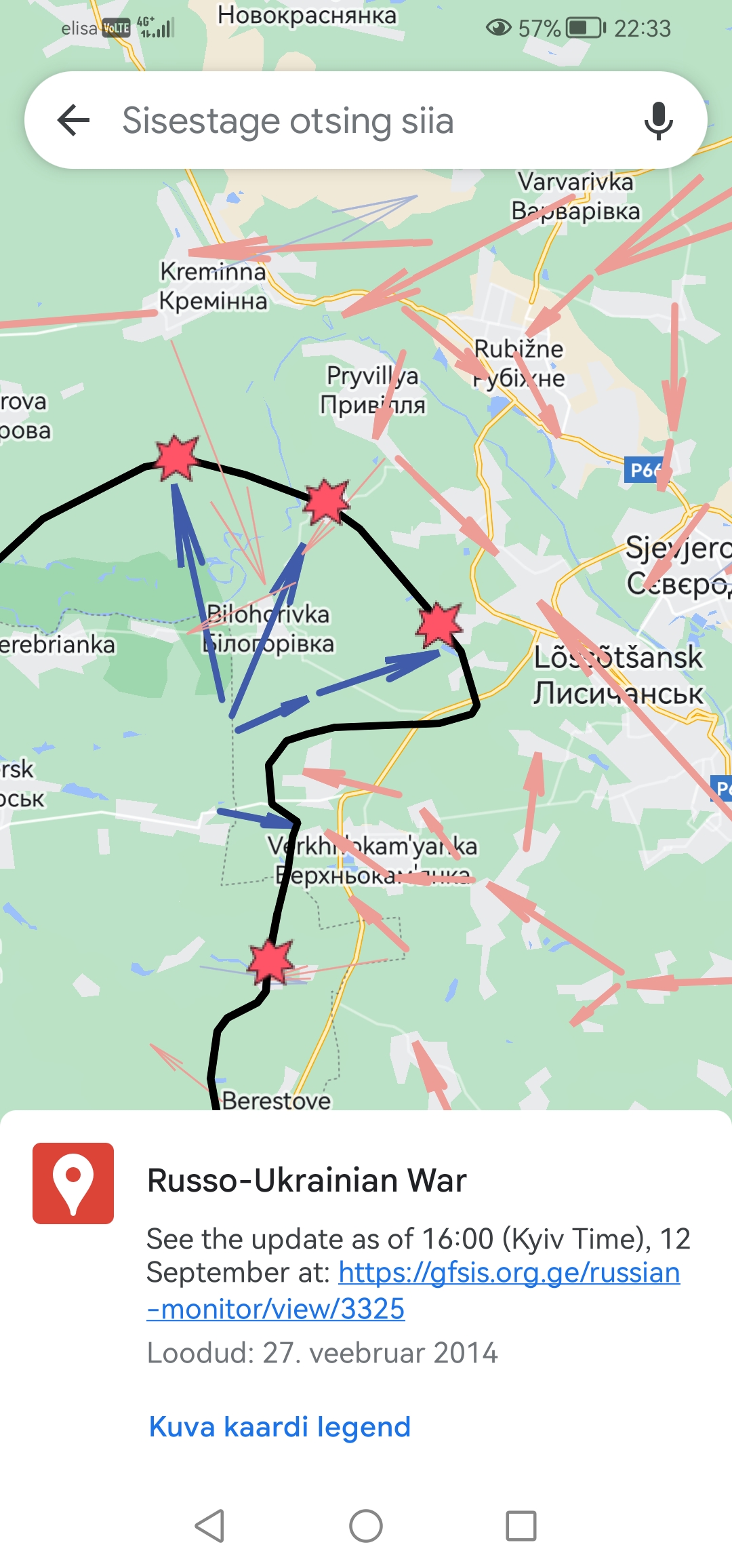 Löögi vahetuks eesmärgiks paistavad olevat Lisitšanski sillad lisaks sellele pontoonile, mis nad ise metsa on püsti ajanud.sass2401 kirjutas: ↑12 Sept, 2022 21:32 Bilogorivke juures on kaartil joont nihutatud https://www.google.com/maps/d/viewer?mi ... 75151&z=11
