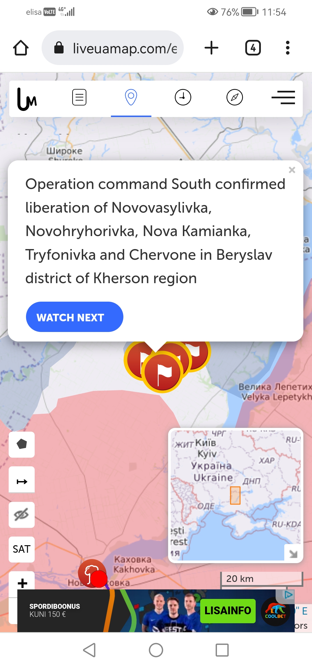 Batashvili kaardi peal on antud külad UA käes alates 2-4 oktoober. Tundub, et korraliku viitega tulevad need ametlikud teated.Kuidagi vaikne kirjutas: ↑12 Okt, 2022 10:52 V tegi siis vasturünnaku. Või on lippud valet värvi. Pigem peaks ned lippud olema siiski sinised.
