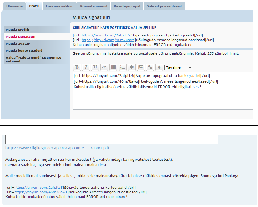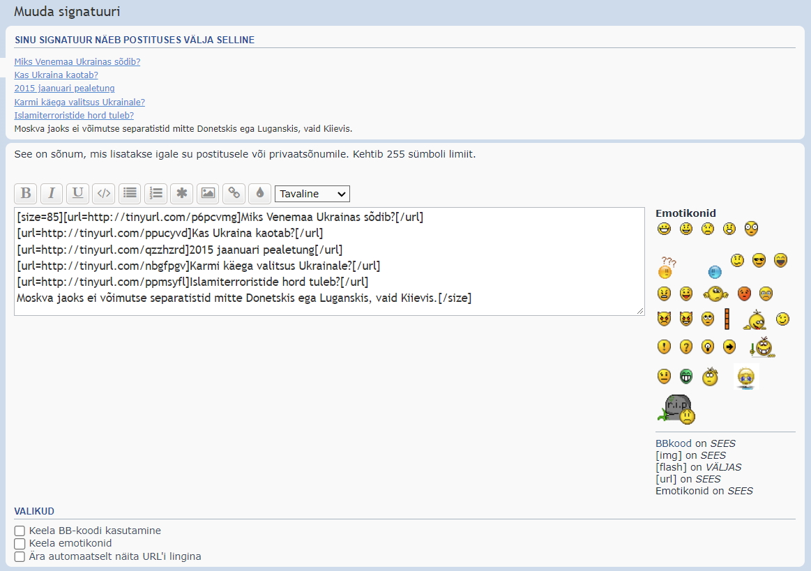 Mul polnud seal linnukest ja signatuuri hüperteksti BB kood ei toiminud mingil arusaamatul põhjusel.