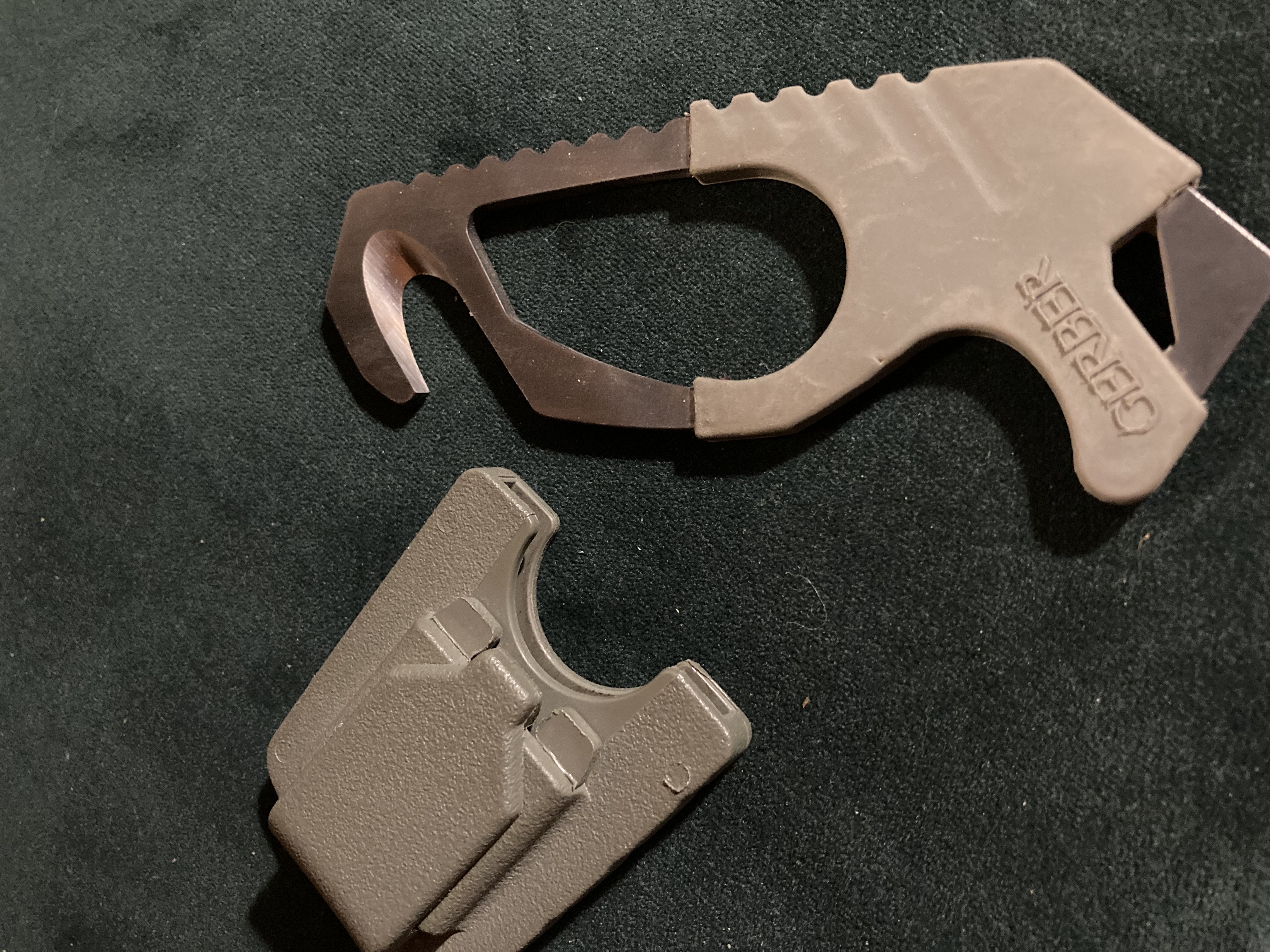 - Gerber window smasher and strap cutter, Gerber nuga - akna avamiseks ja nööri katki tegemiseks. - 20€