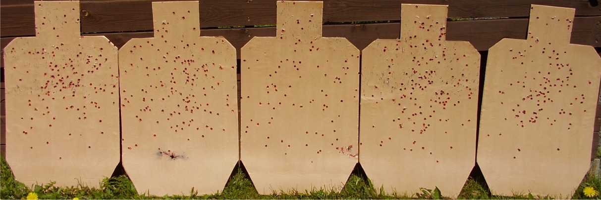 Enne harjutust kõik viis märklehte oli puhtad (aukudeta), pärast laskeharjutust nendes ikka mõni auk on – mina lasin ainult selle ühe korra mis videol ja teised laskurid on süüdi ülejäänud aukudele.