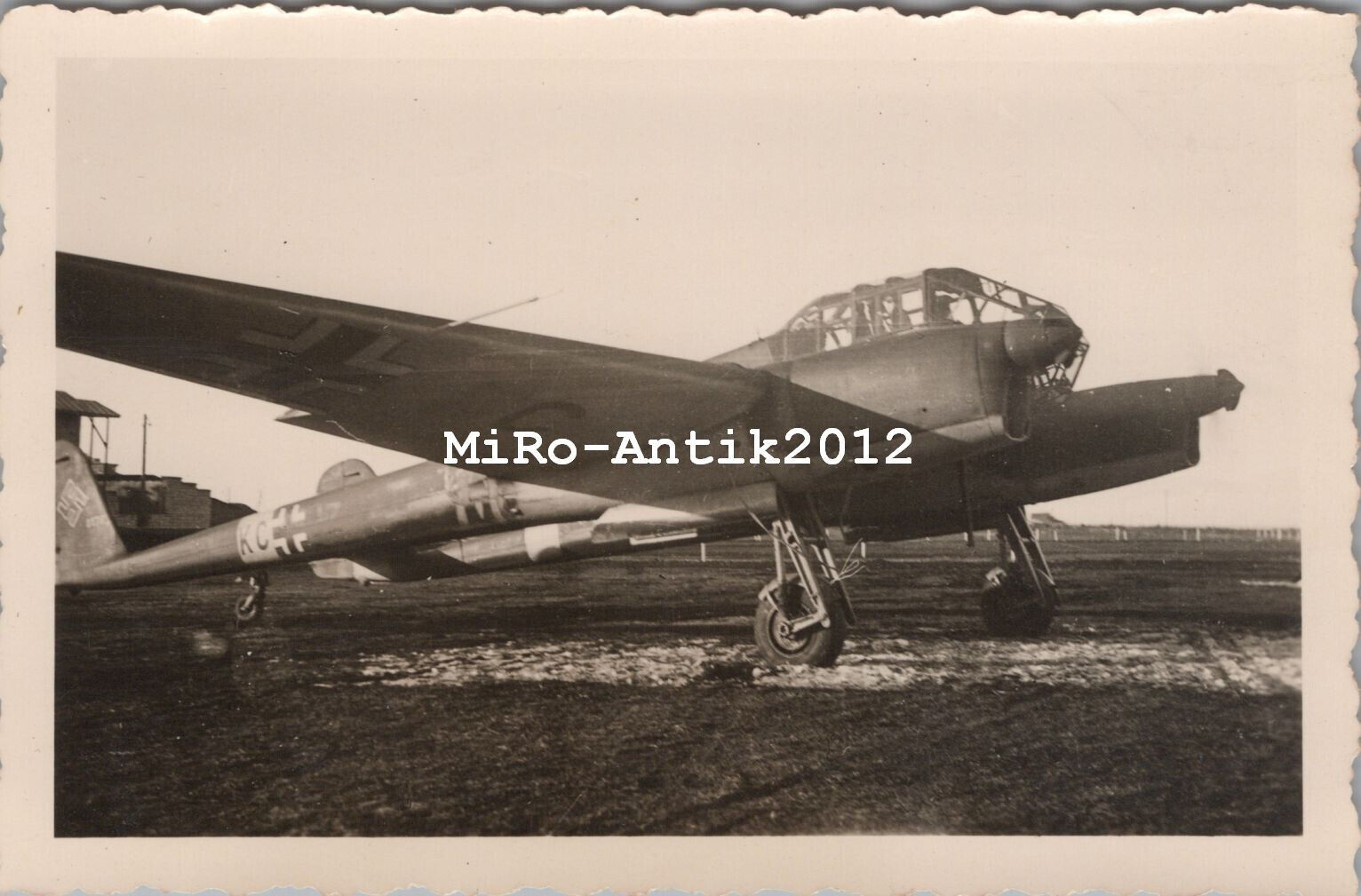 Originalfoto: Bauchlandung einer Fw 58 "Weihe" am Flugplatz, 1944/45