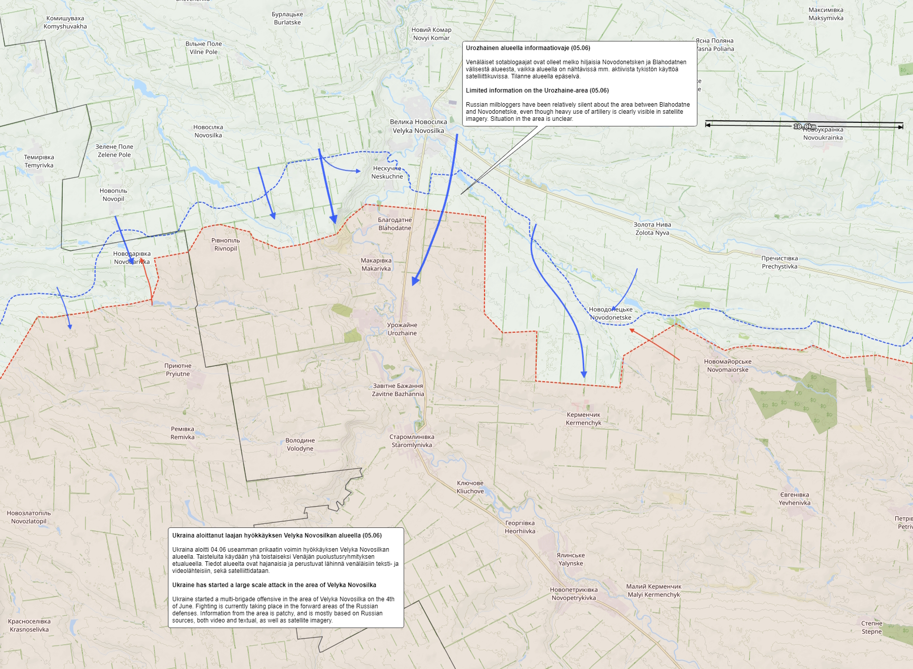 Lõim Velyka Novosilka suuna madistamisest. Kui Novodarivkas saadi kaotusi, siis mujal liiguti edasi. Videod on ka enamuses ainult Novodarivka suunalt.