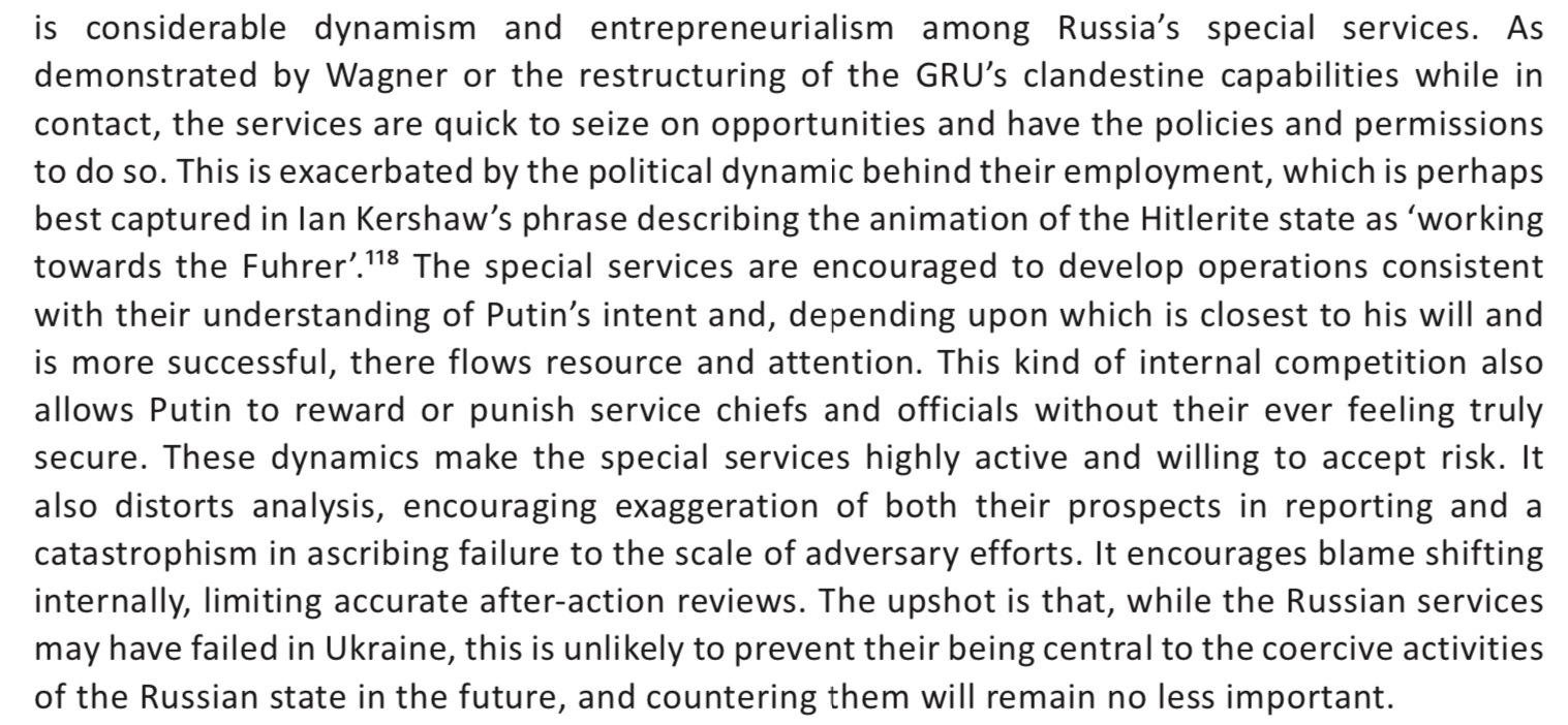 RUSI kevadine raport Ukraina sõja mittekonventsionaalse poole kohta seletab dünaamikat Vene eriteenistuste käitumises muu hulgas ka Wagneri näitel. Kui tsaari mõtteid suudad esimesena ellu viia, siis oled võidumees. Samas on konkurendid kogu aeg kannul.
