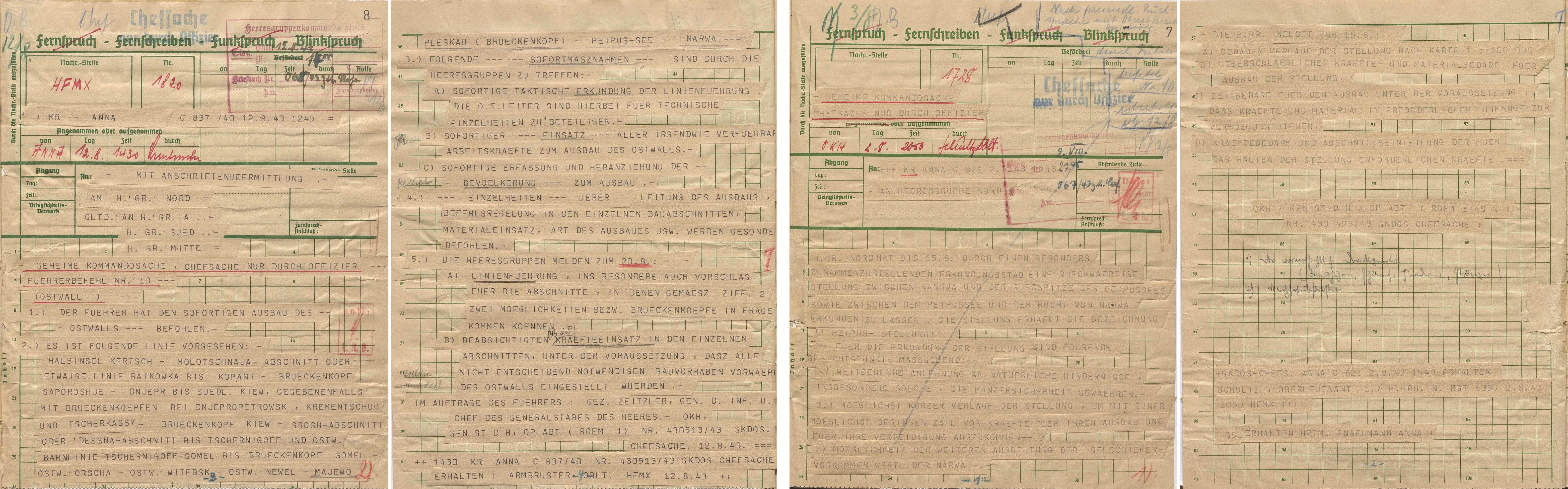 Kui minna ajaloos kaugemale, siis kogu eelpool kirjeldatud tegevuse käivitas „Ostwall“ kaitseliini ehitamise otsus, mis anti välja 12.08.1943, füüreri käsuna nr. 10. (all, vasakpoolsed 2 dok). Selle käiguga tunnistas Hitler esimest korda, et idasuunaline edasiminek ei ole enam reaalne ja paratamatult tuleb asuda kaitsesse.