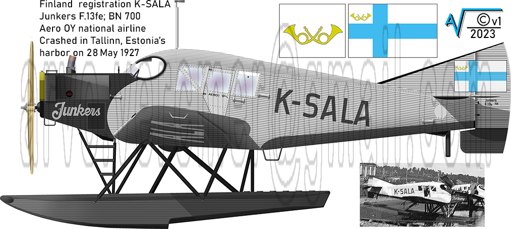 Soome lennufirma Aero OY hankis selle Saksa markeeringuga Junkers F.13fe (D-335) 1923. aastal (nüüd juba üle 100 aasta tagasi). Aero OY kasutas lennukit Helsingi ja Tallinna vahelisel liinil. Kui Aero OY’st sai Finnair, muutus selle lennuki registreering K-SALA’ks. K-SALA läks 27. mail 1927 Tallinna lennujaamale lähenedes kadunuks. Kõik 5 lennukis viibijat (1 piloot; 4 reisijat) jäid allakukkumisest ellu.