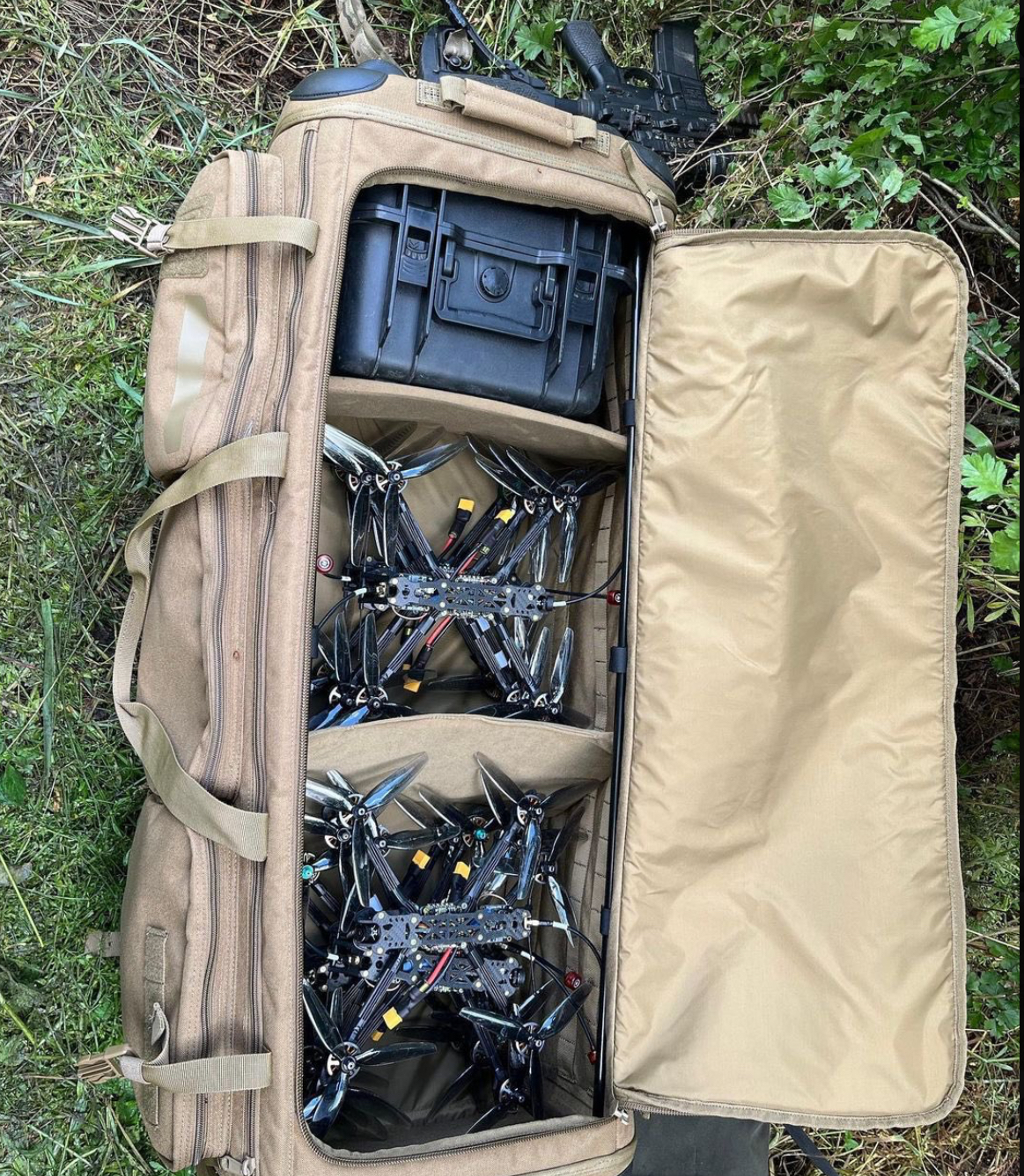 The FPV with a heavier charge applies to the mother drone (Baba Yaga type) at maximum distance and height. After which the FPV “disappears” and flies towards the target. The mother drone also acts as a repeater. This way the drone saves battery and flies over a longer distance + the weight of the warhead increases.