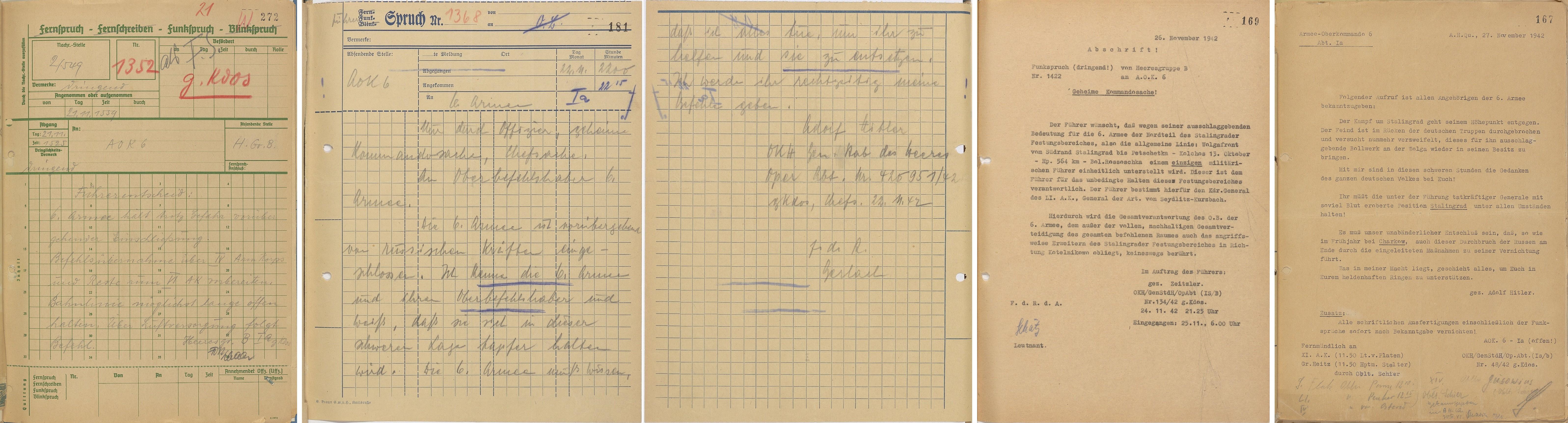 Tundub, et siia sobib lisada Pauluse 23.11 kiri Hitlerile, kus ta kirjeldas kohapealset situatsiooni, vajadust tuua väed Stalingradist ja põhjarindelt ära, et murda lõuna/edela suunas välja, lisas nimekirja temaga nõustuvatest juhtivatest kindralitest ja palus veel kord tegutsemisvabadust. (vasakpoolne)