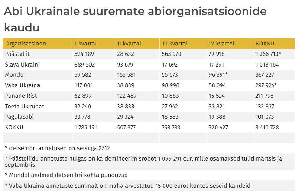 Möödunud aasta kogutud summad: https://www.err.ee/1609208608/inimesed- ... ta-alguses