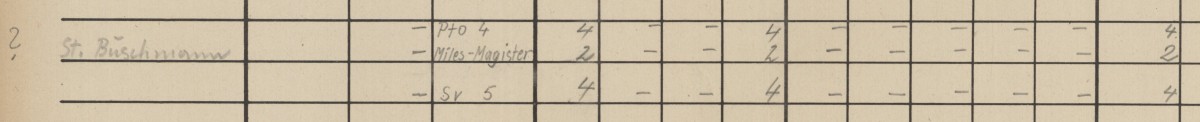 Buschmann ei maini lennukite tüüpi ja pole isegi kindel kas 5 või 6. Nii võib olla, et esimesed kuus lennukit olid 5 x PTO-4 + 1x Miles Magister. Või siis lihtsalt 5 PTO-4, või 4 PTO-4 + 1 Magister.