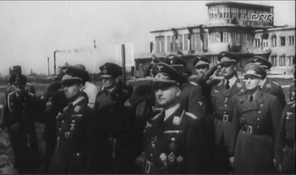 Kuvatõmmis filmiklipist, kus toimus eestlastest lennuväelastega seotud üritus (vande andmine vist). Taamal Tallinna Lennujaama vana terminalihoone.