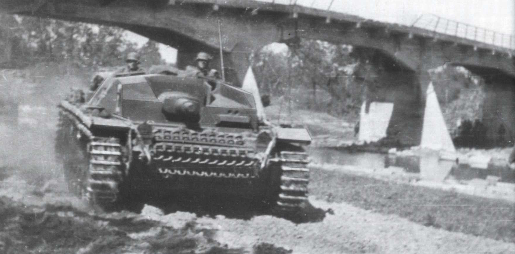 Kas sild tuleb, kellelegi tuttav ette? Võib-olla StuG Abt. 185 StuG, D nähtav. (foto Hans Seidler – Hitler’s Tank Killer. Sturmgeschütz at War 1940-1945, Images of War, lk. 37)