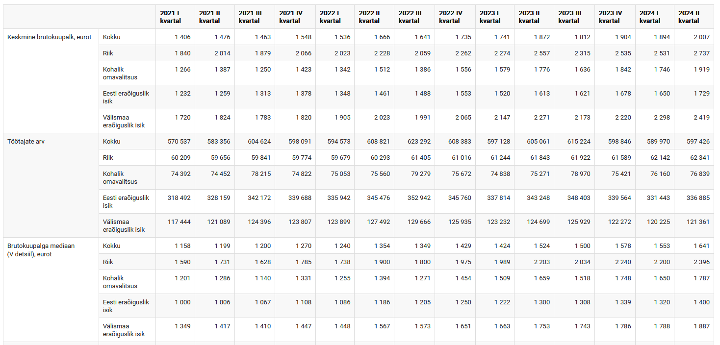 Erasektoris ongi selles mõttes "lihtne"AMvA kirjutas: ↑03 Okt, 2024 11:08Kas palgatõus peaks olema automaatne, et lihtsalt tõuseb ja tõuseb. Esiteks on ta niikuinii kohu aeg tõusnud, vaata, mis olid palgad 10 aastat tagasi.parkija kirjutas: ↑03 Okt, 2024 10:54 Oot , pidage hobuseid : Kas meie omad töötajad kes reaalselt oma käte - ja teadmistega ei vaja palgatõusu ?