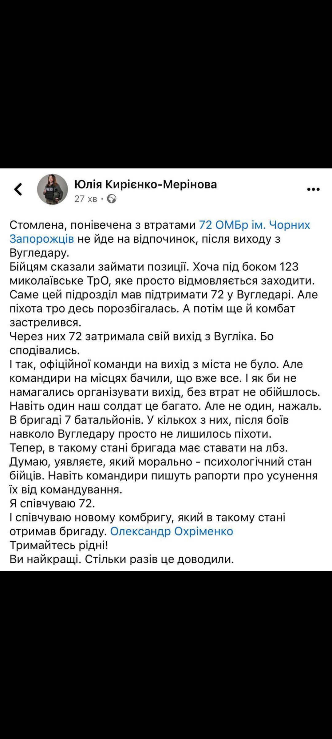 Lootsin, et Vuhledarist saadi korrapäraselt taandutud, aga paistab, et mitte. Kogu aeg tundub sama loo kordus - Bahmut, Avdijivka ja nüüd Vuhledar. Otsus positsioon maha jätta ja uuele positsioonile taanduda liiga hilja. All pool nopped lõimest, mis kirjutati 72. brigaadi võitleja poolt peale Vuhledarist lahkumist.