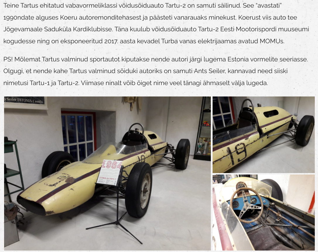 Esimene ja ainueksemplar Nliidus tehtud F1 vormel - Tartu-2