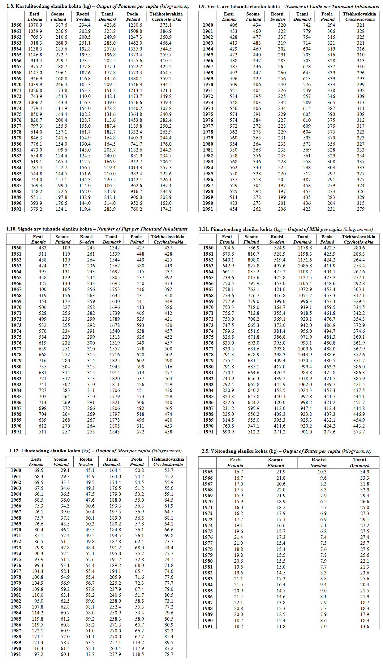 ■ 1985. aastal müüdi riigile 190 700 tonni teravilja (1980. aastal 154 800 t), 190 900 (259 200) tonni kartulit, 71300 (63 500) tonni köögivilja, 199 200 (178 400) tonni loomi ja linde tapakaalus, 1 229 400 (1 097 500) tonni piima ja 378,4 (358,5) miljonit muna.