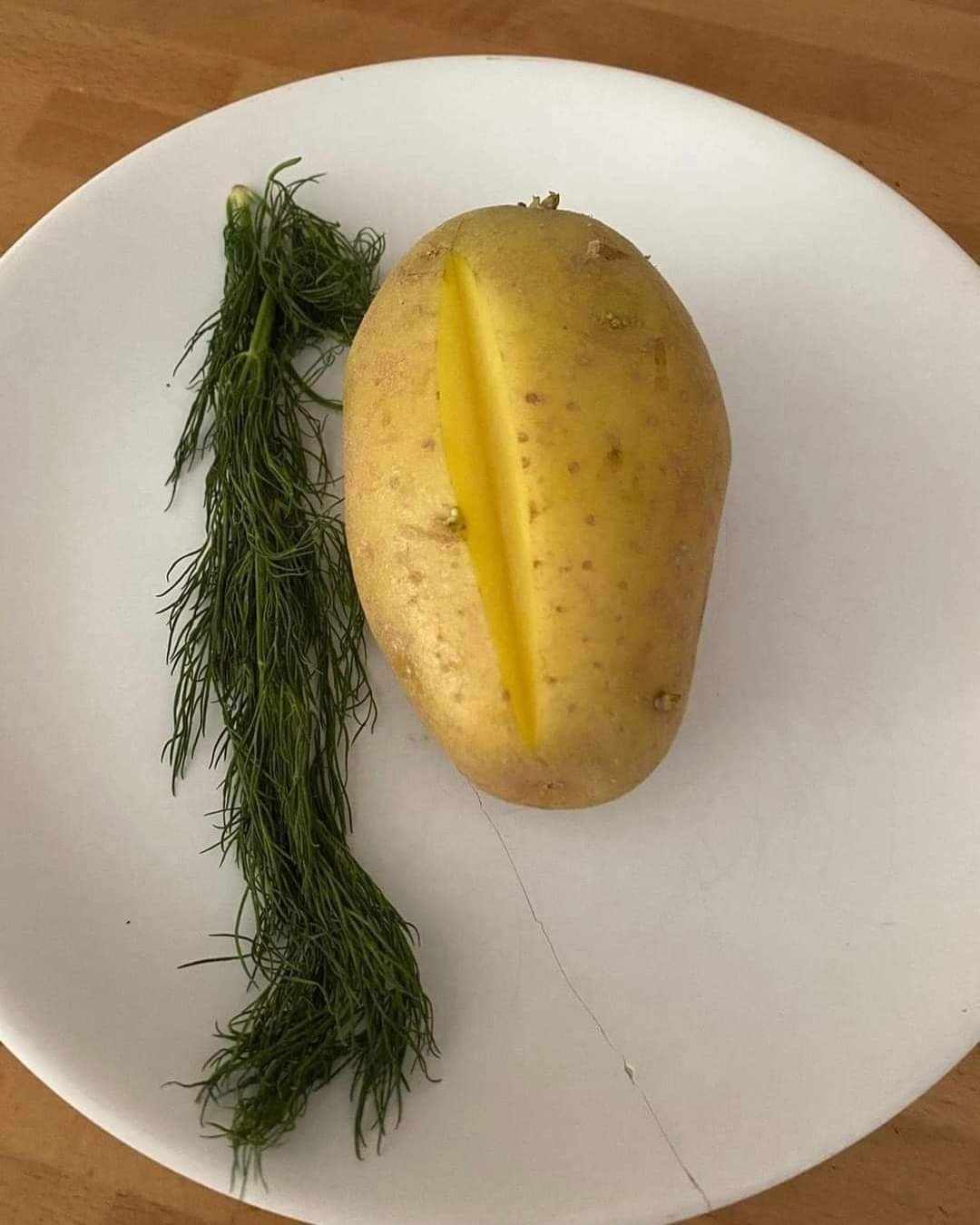kaks lõhet, üks kartulis ja teine taldrikus...