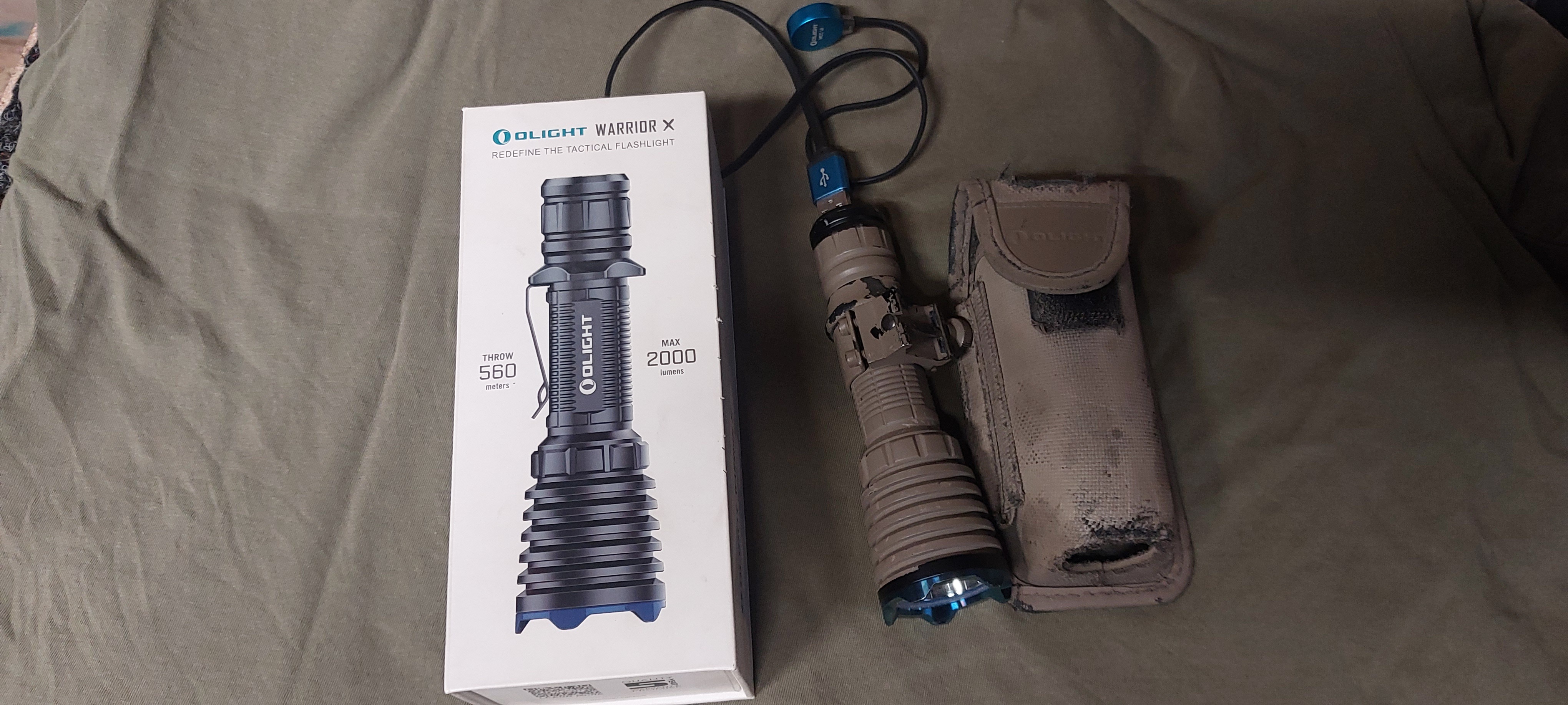 Olight Warrior X väga vähe kasutatud,klaas kriimudeta ja 3000mAh aku ning laadija,picatinny/weaver relva klamber.