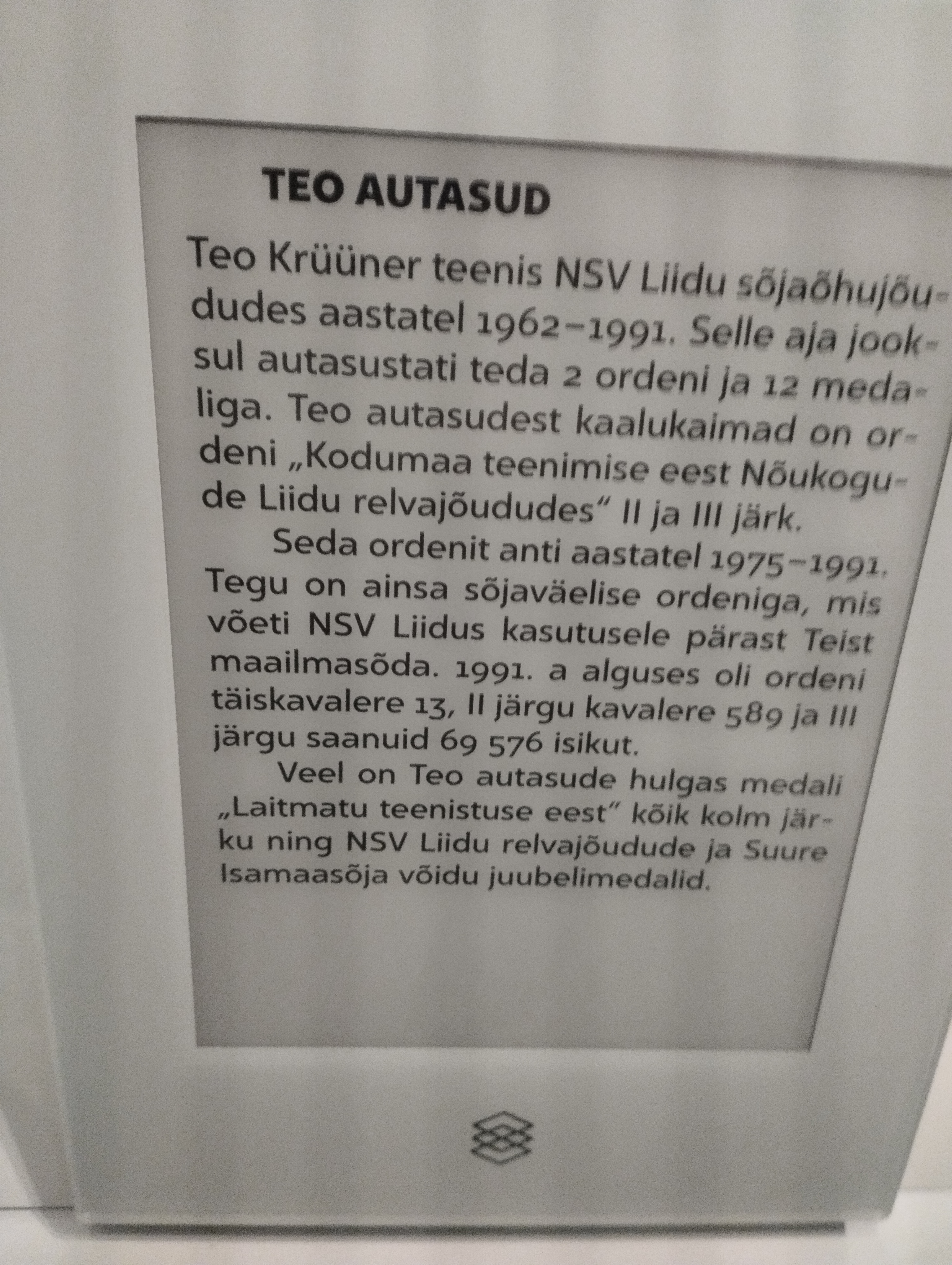 Teo Krüüner teenis Nõukogude armees 1962-1991 ja oli polkovniku auastmes, tema sai 2 ordenit ja 12 medalit. Pildid ka siis kogust: