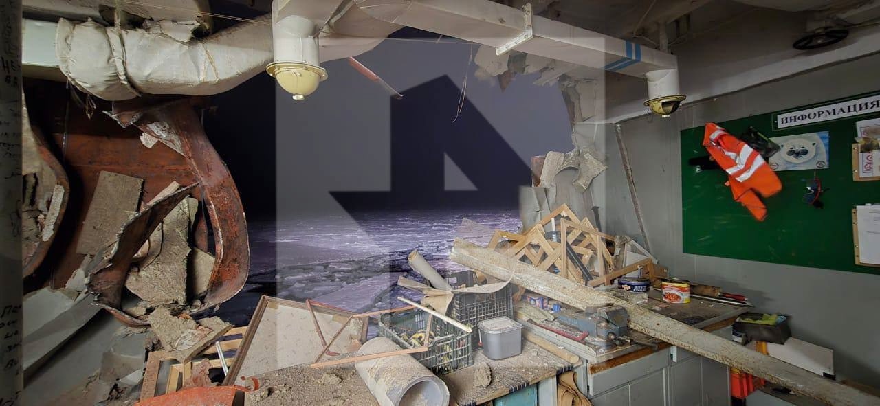 Näib, et löök tabas jäälõhkuja pardal tegutsevat pildiraamikombinaati.