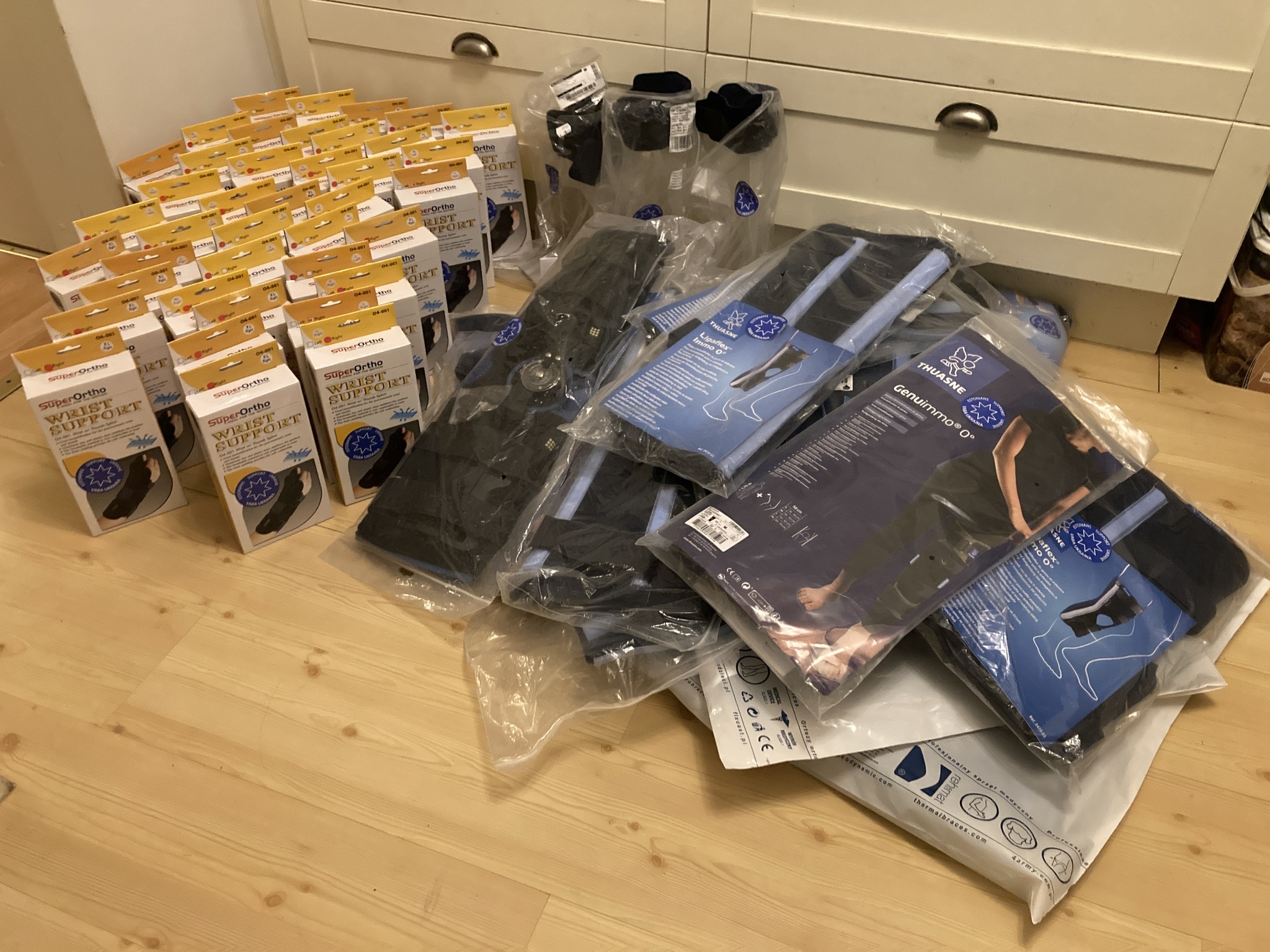 63 väga kvaliteetset ortoosi haavatute taastusraviks, mida haiglast küsitakse, seda ka saadame.