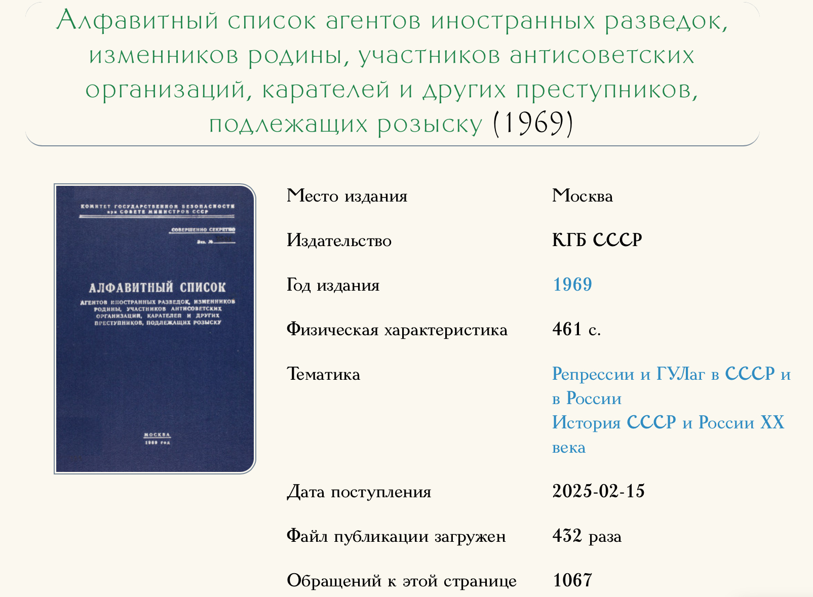 Veel : viimane " Spisok..." umbes samas mahus ca 450 lk.ilmus 80-ndate pigem algus/keskel ja saadeti IGALE kgb territoriaalstruktuuri üksusele / eriosakonnale /piirivalvele üle cccp.