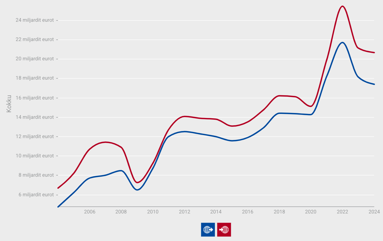 2024 oli Eesti kaubavahetuse puudujääk 3,25 miljardit eurot.
