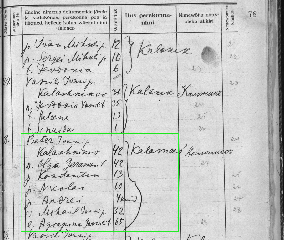 Selliseid Kalašnikov-Kalamees nimemuutmisi on küll, aga mis see põhjus oli, seda muidugi leitud materjalidest ei näe...