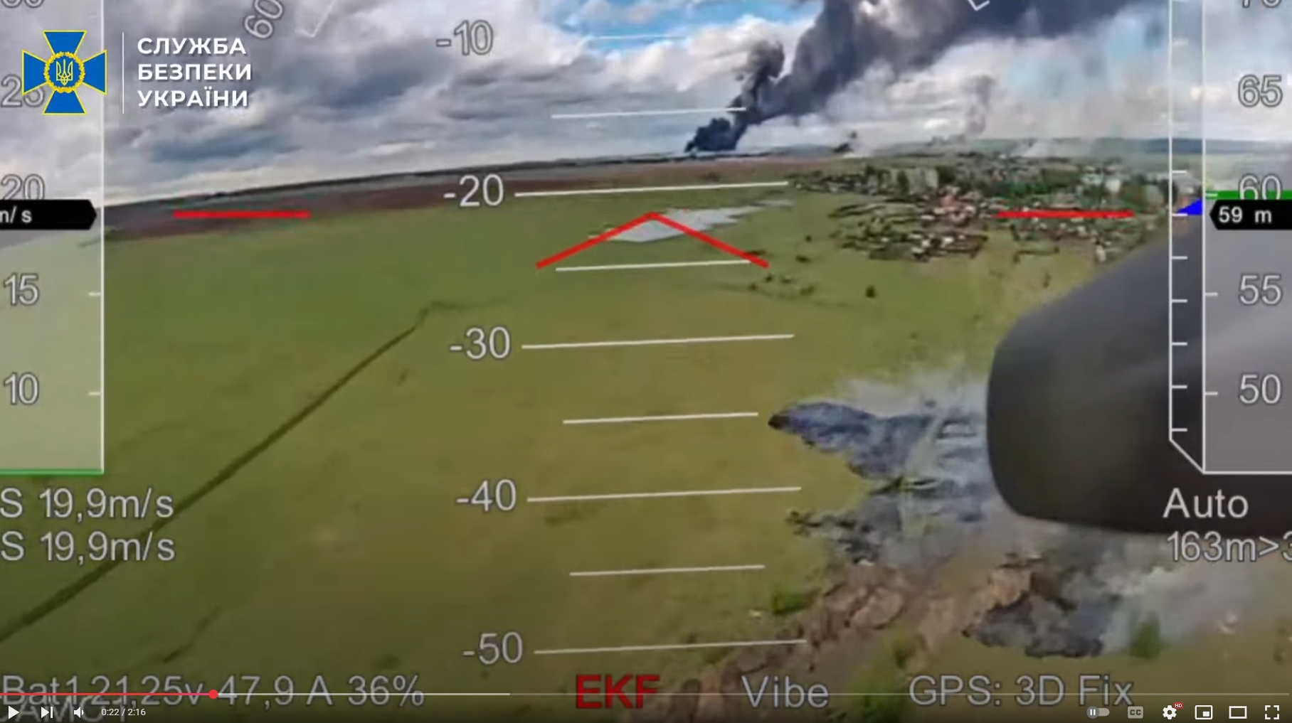 Samas videos on enne lennuväljale jõudmist näha paaris kohas maastikupõlengut. Kas need on allalastud droonid?