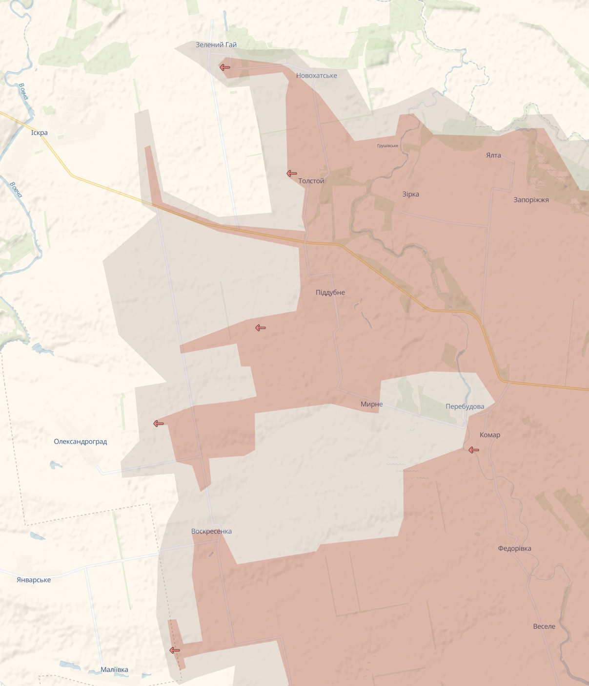 Kui DeepState kaart õigus näitab, siis neid ümberpiiramise juhtumeid ikka tekib... Põhjapoolne paistab eriti selge olevat: UA hoiab puuderiba Tolstoist läänes, aga nii järgmise puuderiba kui põhja pool Zeljonõi Gai asula on võtnud venelased ja taandu nüüd kuhugi üle lageda välja
