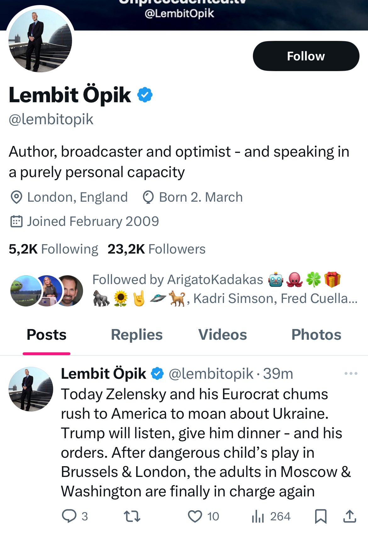 krossipart kirjutas: ↑18 Aug, 2025 15:34 Kas kirjutas musta huumoriga või reaalselt..Mina ei tea-tunne Öpikut..