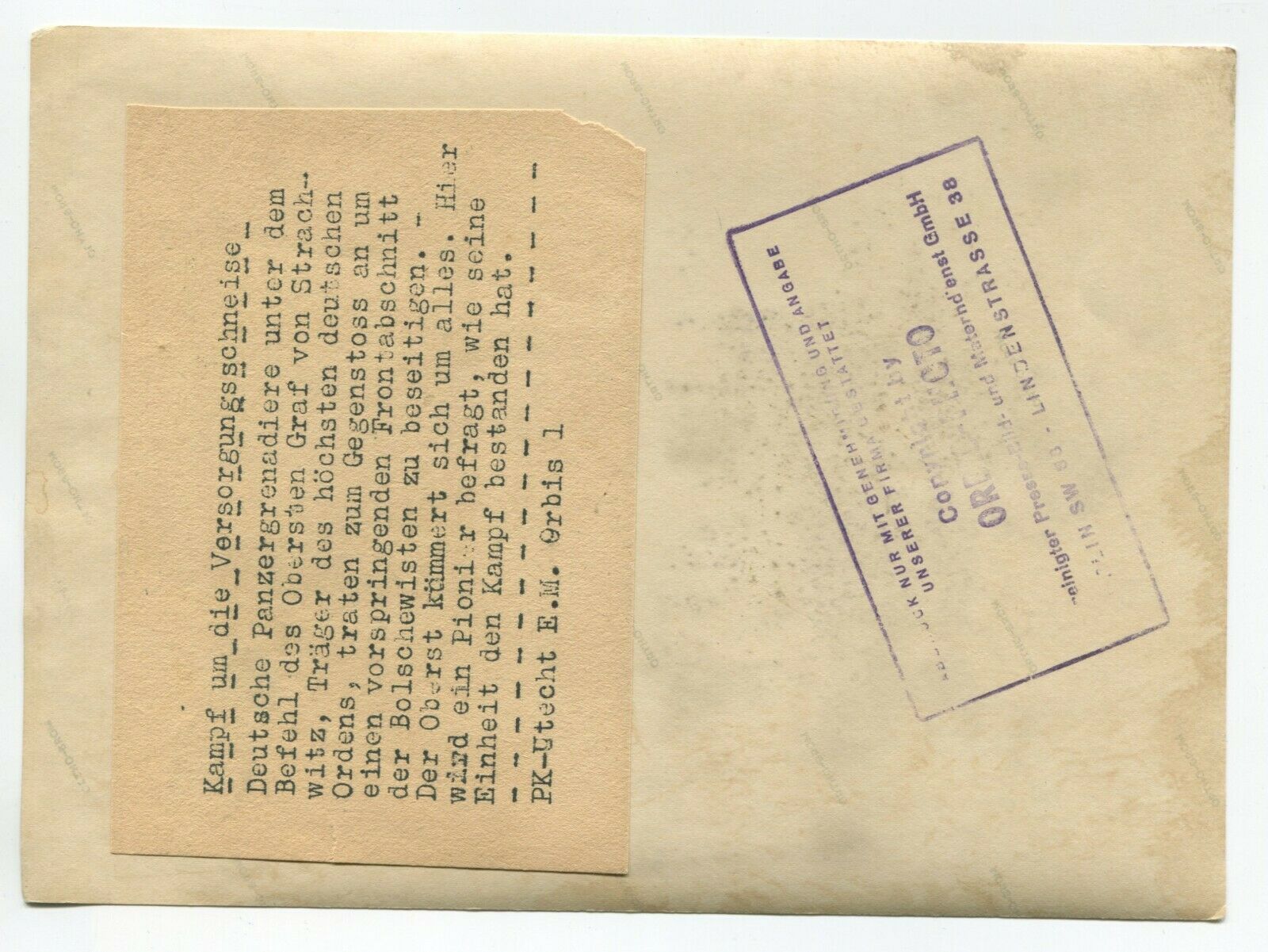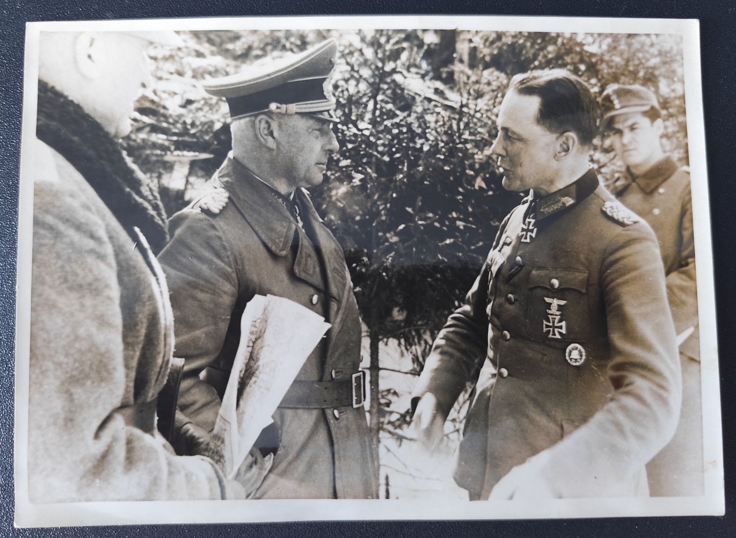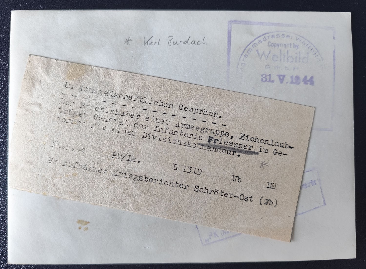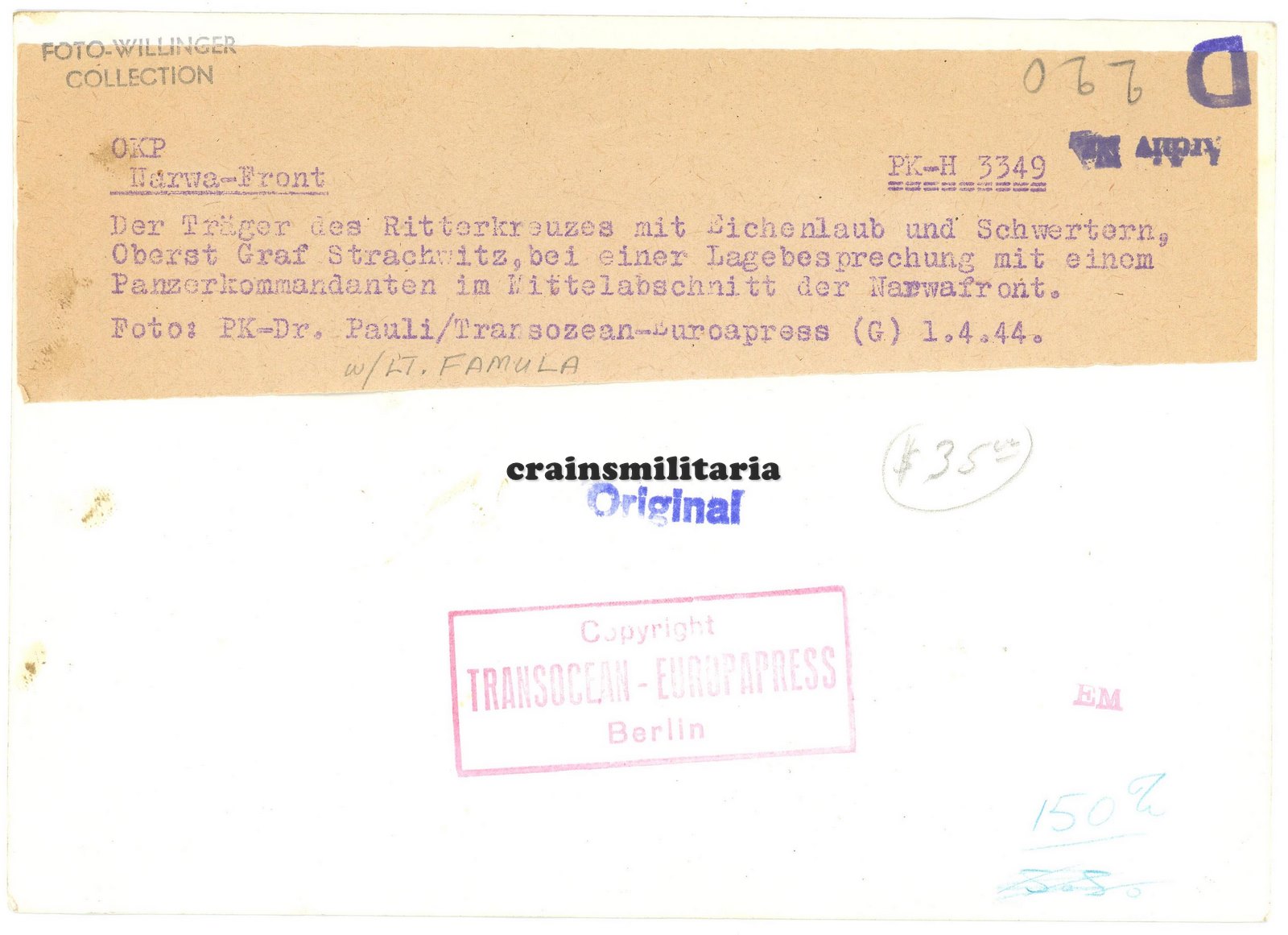 Strachwitz jälle vestlushoos, pildi tagaküljel väidetakse, et kuulab leitnant Famula.