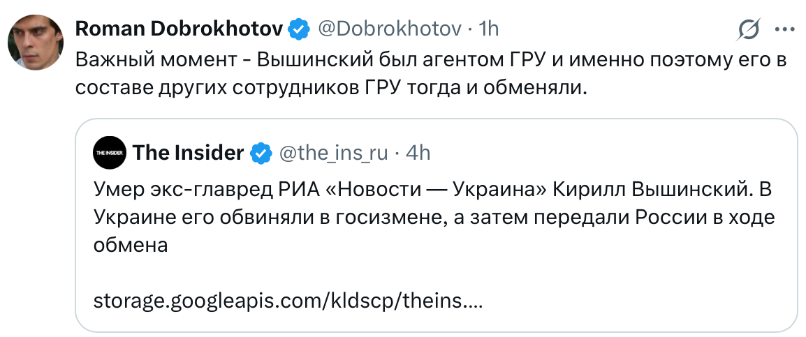The Insideri Dorbohotovi sõnul oli mees GRU agent. Siinkohal võib omaette jutulõime üles võtta, et miks seal neid reetureid nii palju küll on. Üheks põhjuseks loeksin isiklikult ukrainlaste olulise integreerimise juba Nõukogude insititutsioonidesse. Siin tõdemus NLKP keskkomitee rahvusvahelise osakonna seltsimehe memuaaridest.kaur3 kirjutas: ↑23 Aug, 2025 9:38 Üks stiilinäide järelhüüdest mis ametikohtadel Ukrainast pärit inimesed Moskvas toimetavad. Kahtlemata saatis teda kuni surmani armastus Ukraina vastu. Missuguse Ukraina vastu?