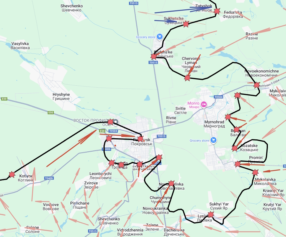 Sõjauuringute Instituudi analüütikud kribavad, et Pokrovski piirkonnas on rindejoon jätkuvalt äärmiselt ebastabiilne ja Ukraina / venemaa uued väeosad jätkavad linna poole liikumist.