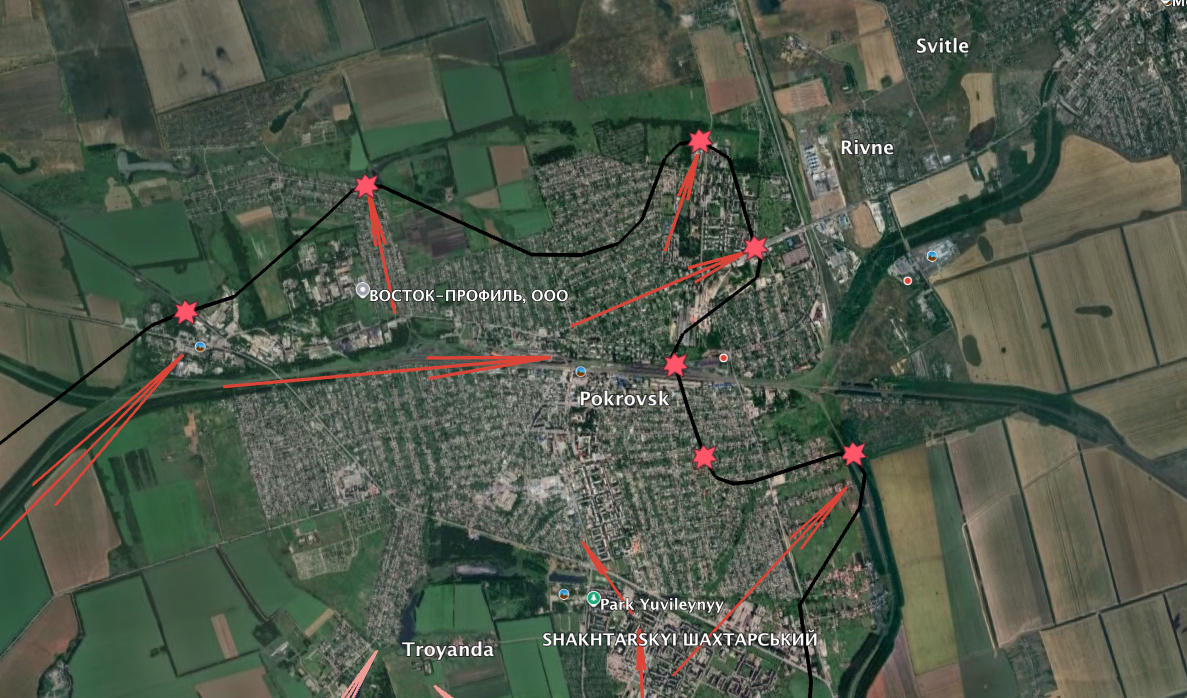 Tegemist on üsna laial ala paikneva väikelinnaga, mingi 300 prussakat ei tohiks suuta seda kontrollida. Aga ju siis droonid ja väikeste üksuste sisse imbumine on peamine põhjuks miks käib vaikne taandumine. Lisaks on linnas ka mingi u 1000 eraisikut veel kesk kindlasti on pigem ohuks Ukraina armeele, juhul kui vatid eraisikute riideid kasutavad. Bahmuti jms pommitasid venelased maatasa. Selleks neil enam jõudu ei jagu. Võitmatu vattide armee on Pokrovksit vallutada 2 aastat, tegemist on Pärnust veidi suurema linnaga.