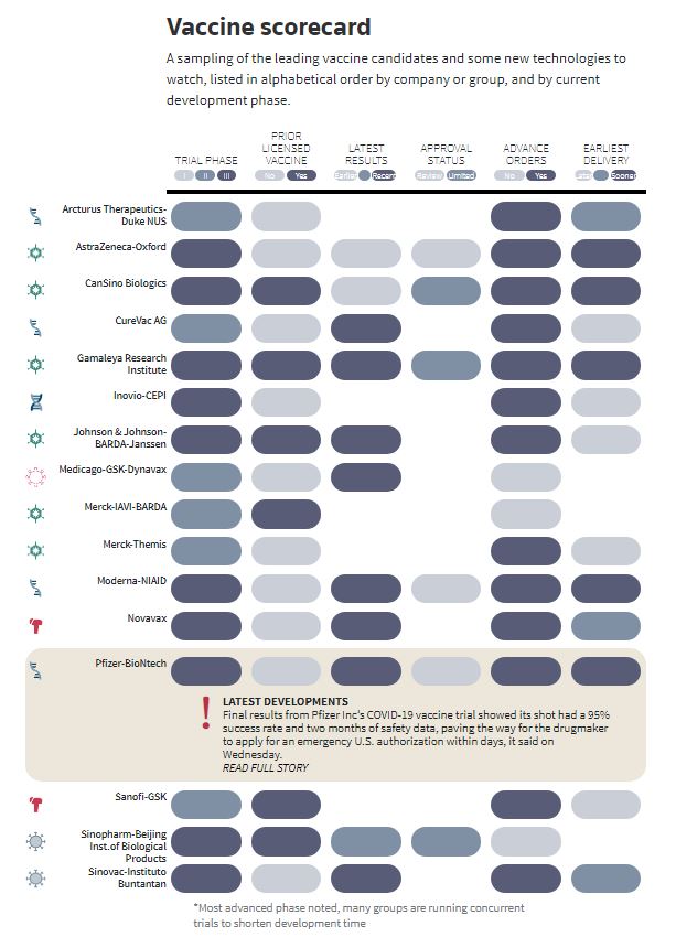Reutersi pealt selline ülevaade töös olevatest vaktsiinidest. Originaalis interaktiivne.