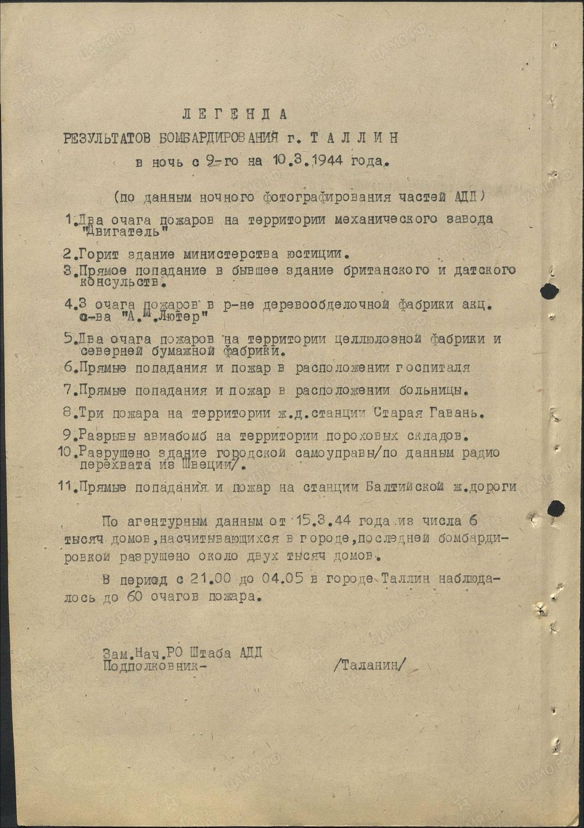 «Но военные объекты и не были целью этих налетов, – говорит Аркадий Иосифович. – В отличие от Риги и Вильнюса, в отношении Таллинна ситуация изменилась. По имевшимся данным, здесь проходили совещания высших офицеров и генералов Восточного фронта, которые, вероятно, обсуждали, как противодействовать наступлению русских. Вот и поступил приказ – подвергнуть бомбардировке место скопления крупного немецкого командования. Чтобы в конечном итоге, возможно, сохранить жизни тысяч наших людей».