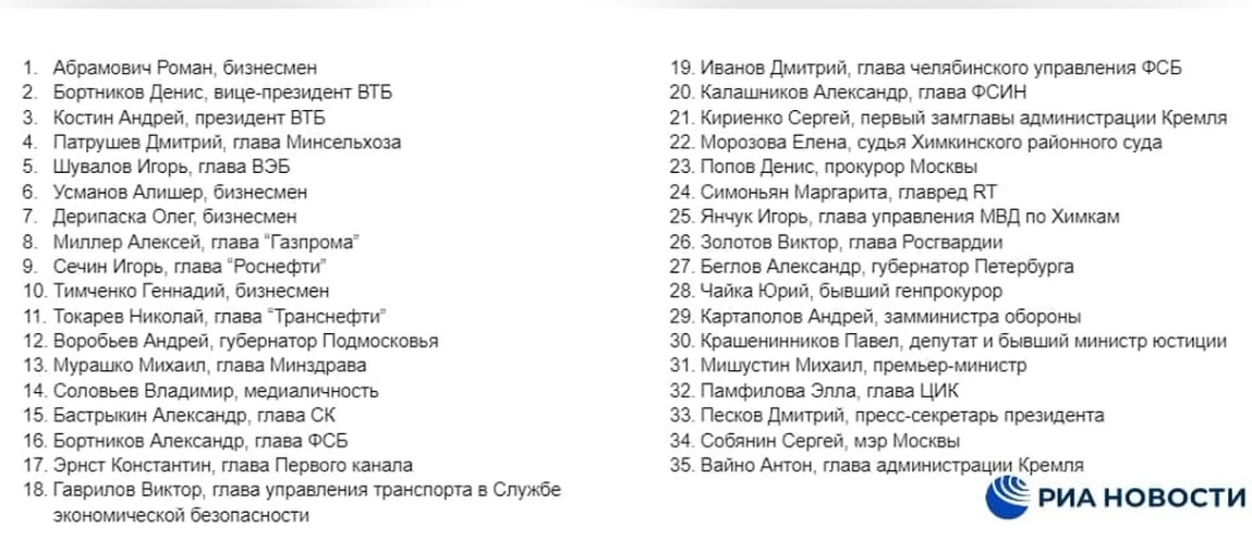 Kui see nimekiri läheb läbi,siis sisuliselt on kõik rahalised vahendid,kinnisvara ja ettevõtlusega seotud aktivad Läänes arestitud.