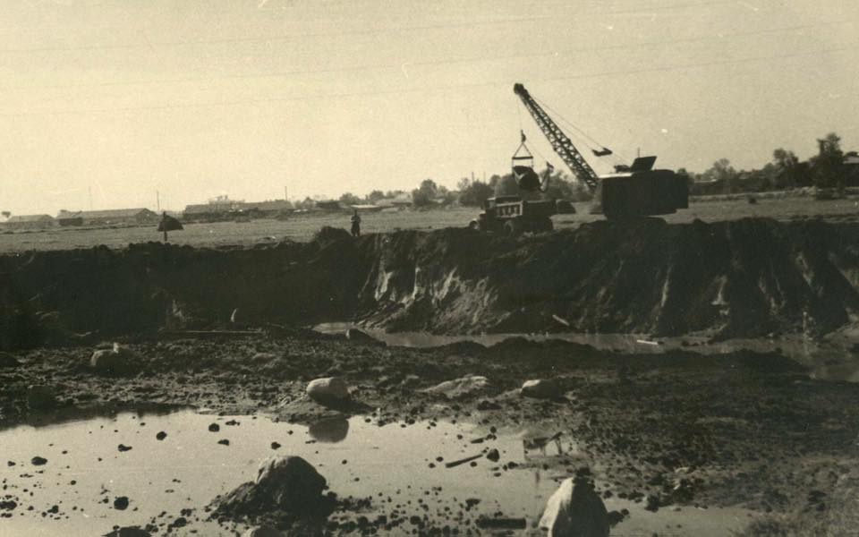 Kust see foto muidu saadud on, kui küsida tohib? Kas isiklikust arhiivist? Anne kanali kaevamist alustati 1965. aastal (ja katkestati 1971). Pildil on väike tiik, mida aga looduslikult seal vähemalt varasemate aerofotode ja kaartide järgi polnud. Seega küllap mingi proovikaevend. Samas suuri ekskavaatoreid veel pole, vaid üks kopaga JuMZ tegutseb nurgas ja ilmselt pigem tänavaehitusega seoses. Lennukite sabad Raadilt paistavad ka.