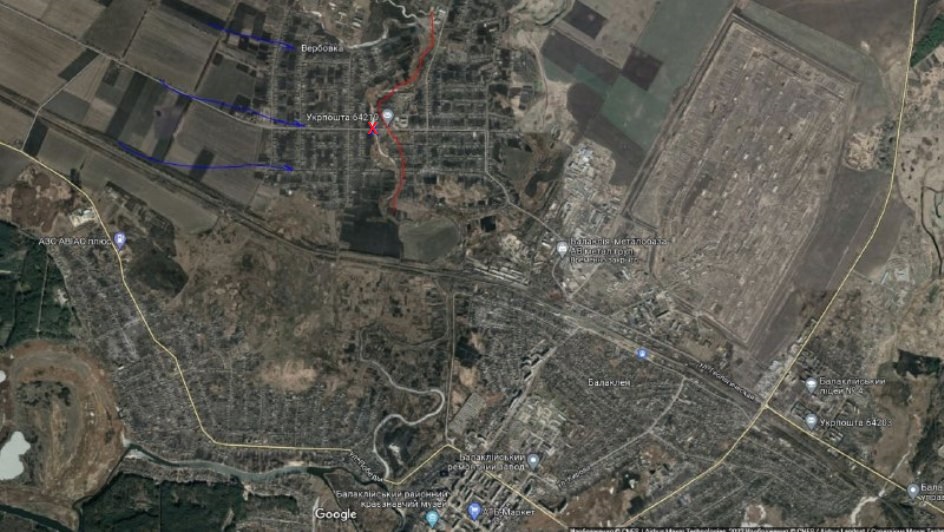 AsukohtSeoses Verbovka ja Balakleya küsimusega. Verbovka on küla Balakleyast loodes. Punase ristiga on tähistatud hävitatud silda üle Krainaja Balakleyka, mis jagab küla 2 osaks (jõgi pole sügav, jalavägi võib kohati läbi kahlada, varustusega koos vähetõenäoline). Silla kas õhkisid meie (VF) väed Verbovka lääneosast taganemisel või hävis see lahingute käigus (täpsed andmed veel puuduvad). Ilmselt on hetkel vaenlane osaliselt hõivanud Verbovka lääneosa (pressib välja meie reservväelasi), milles lahingutegevus jätkub ja kuhu nüüd reservid üle viiakse. Ei ole soovitav lubada vaenlasel Verbovkas kanda kinnitada, kuna sealt saab ta proovida edeneda linna põhjaosas asuvatesse tööstustsoonidesse, püüdes jõuda Volkhov Yar - Balakleya maanteele, häirides seega VF relvade tarnimist ja järelevedu, katkestatud sellel alal tegutsevate üksuste varustamise.
