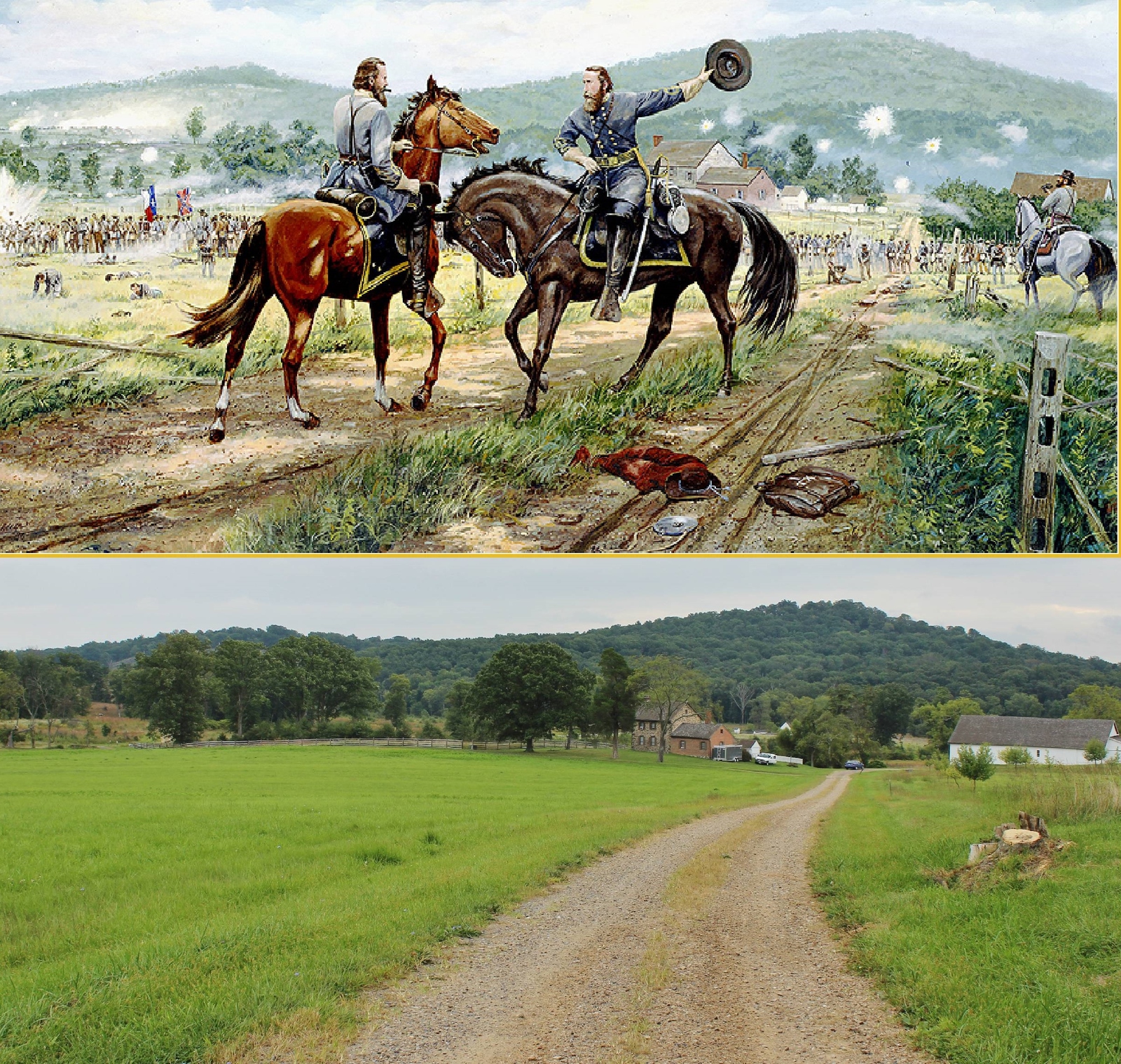 Üleval on jäädvustatud üks ajalooline hetk, all on sama koht looduses.