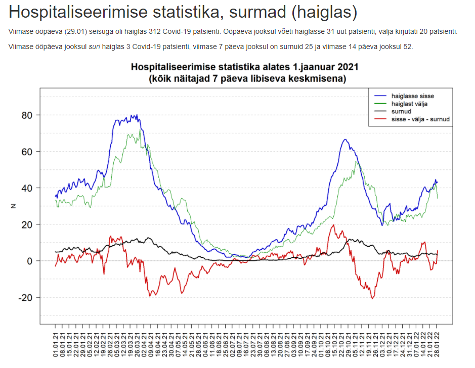 Tänahommikuse seisuga on haiglas 346 koroonaviirusega nakatunud patsienti. Neist 219 vajab haiglaravi raskeloomulise COVID-19 tõttu, nendest omakorda 171 ehk 78,1% on vaktsineerimata ja 48 ehk 21,9% on lõpetatud vaktsineerimiskuuriga.