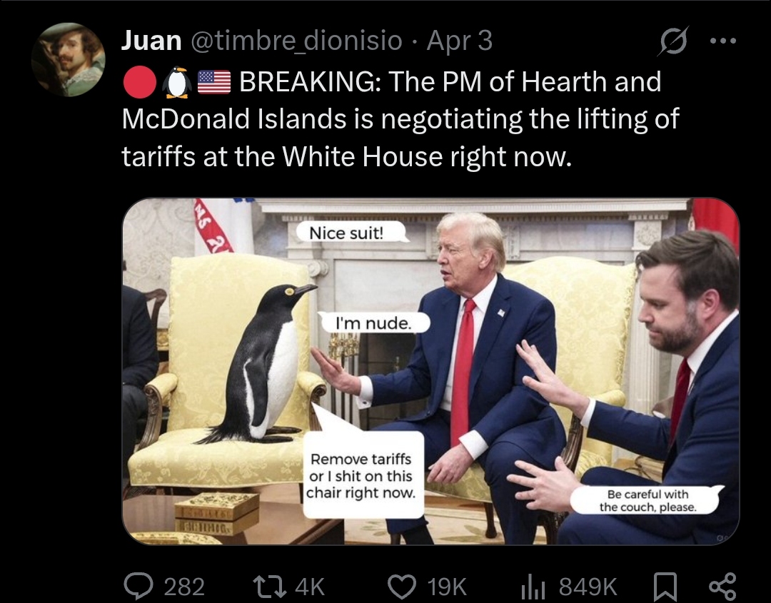 Trump & Co pani tariifid peale muuhulgas ka pingviine täis saarele ning see on väidetavalt see, mis Valges Majas praegu toimub