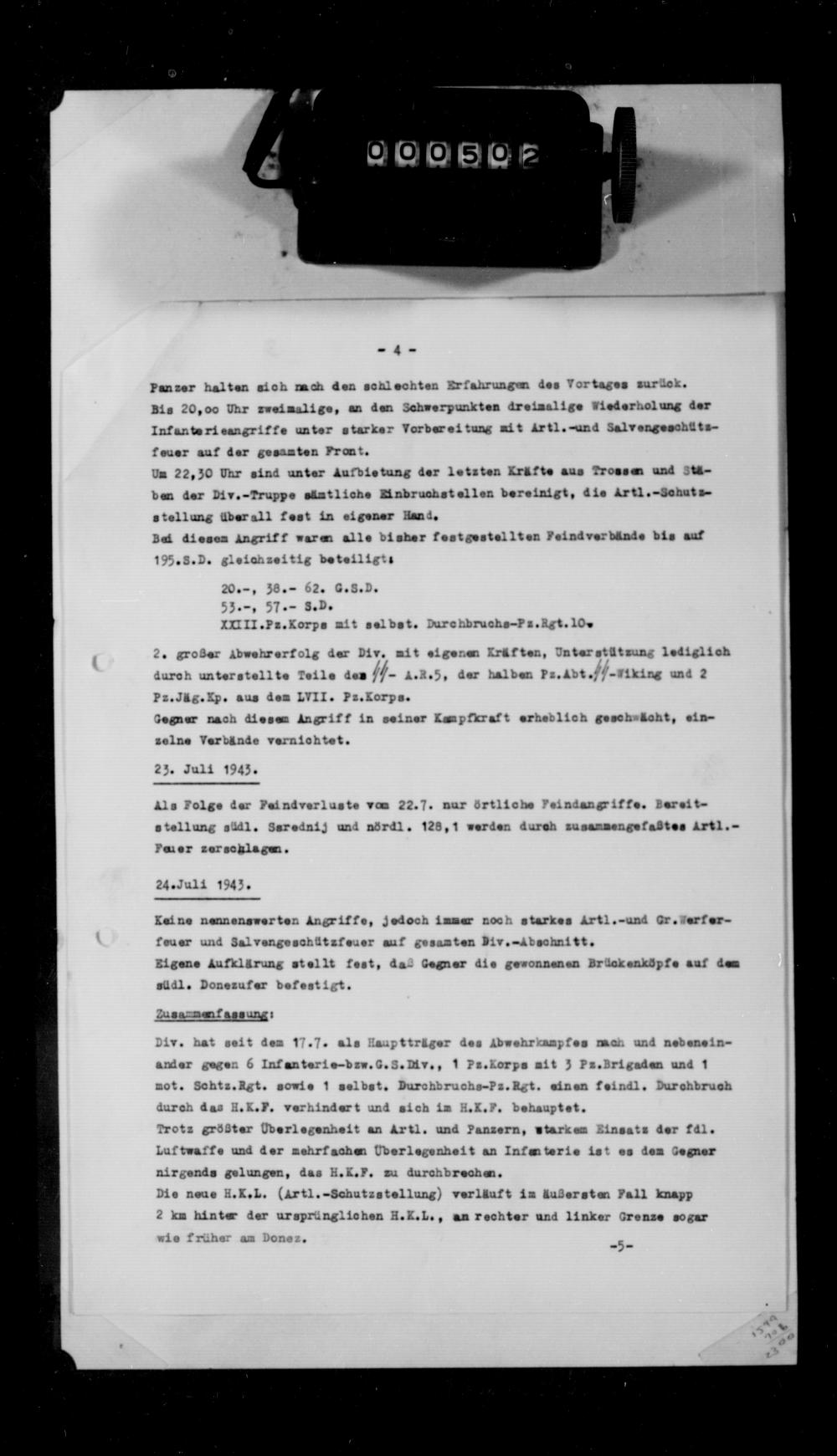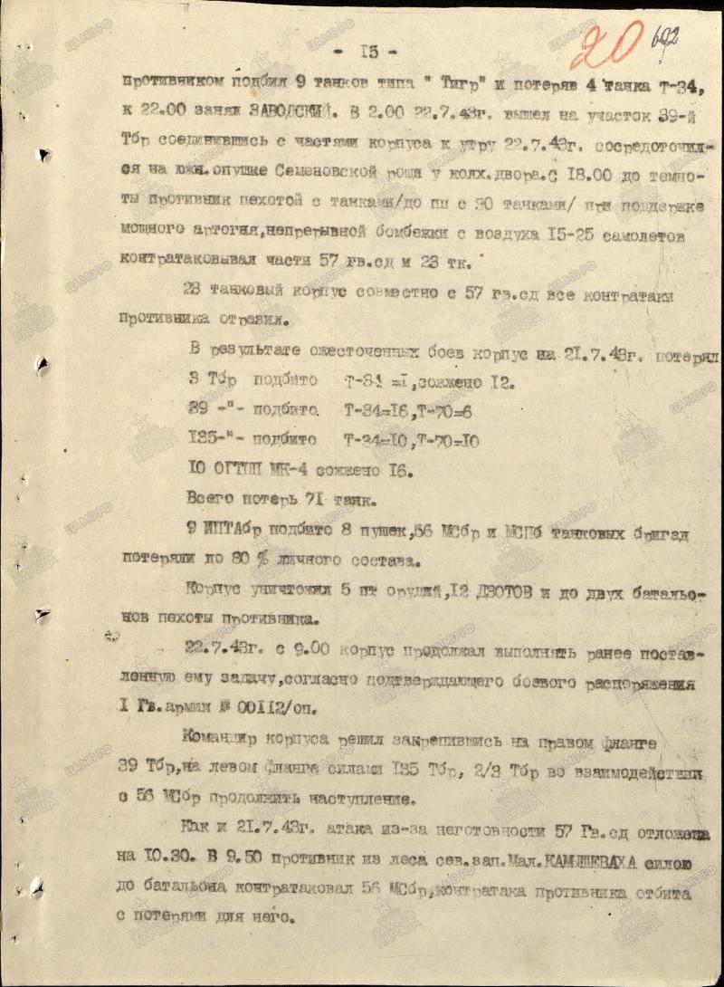 Nõukogude poolelt paistab asi lihtsam olema. Postitan 23. tankikorpuse aruande lahingutegevusest 17. kuni 23. juulini (osaliselt).