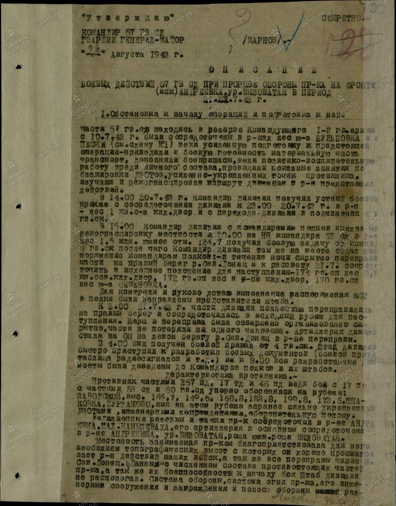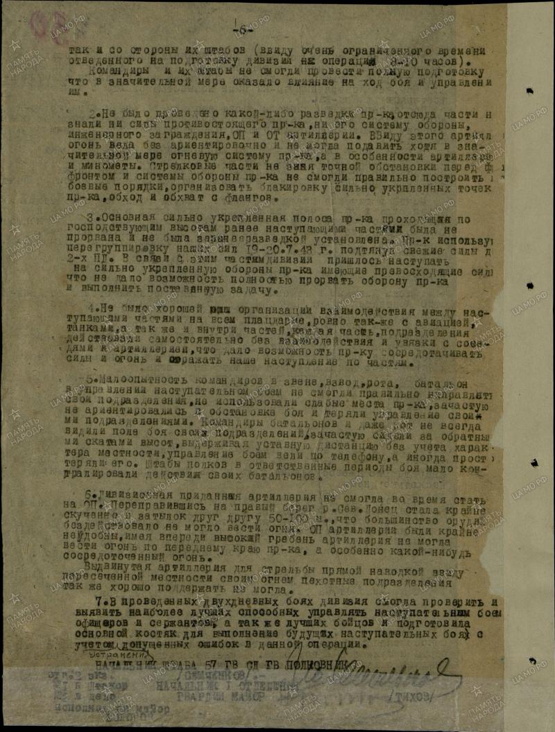 57. kaardiväe laskurdiviis on samuti ühe aruande kirjutanud. TsAMO 1176/1/15 (pamyat-naroda.ru)